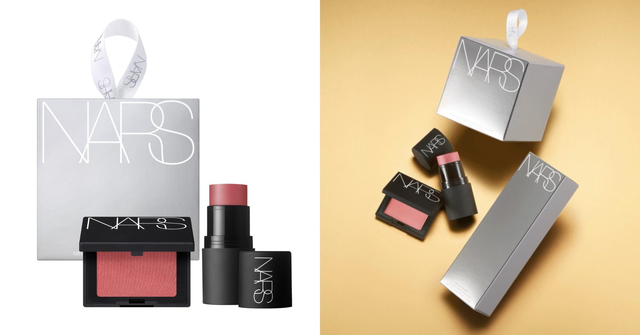 出席聖誕party前當然要換一身絕美outfit!多款NARS的皇牌單品和你一起換上閃爍的金、銀色新禮服,包括原生光蜜粉、玩魅啞緻唇膏、 胭脂、水光氣墊粉底盒及光亮柔滑遮瑕膏,流金包裝設計閃亮奪目兼充滿節日氣氛,散發極致魅力,實在令人愛不釋手!