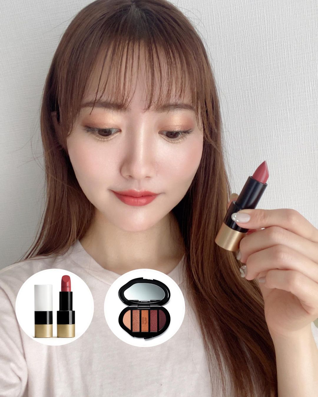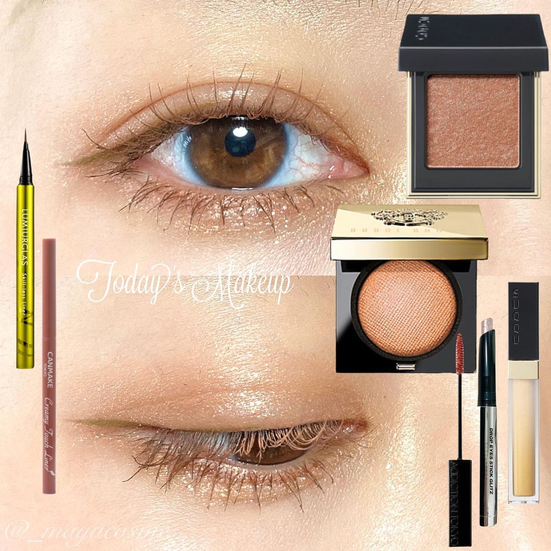 減少化妝公式化步驟後,臉上整體變的更減柔和,所以日本女生特別注重「光澤感」,在兩頰或者眼皮多一些溫柔不張揚的光澤作點綴,例如是用水光感重的光影膏,和閃粉幼細的眼影,不是韓國那種大亮片眼影~