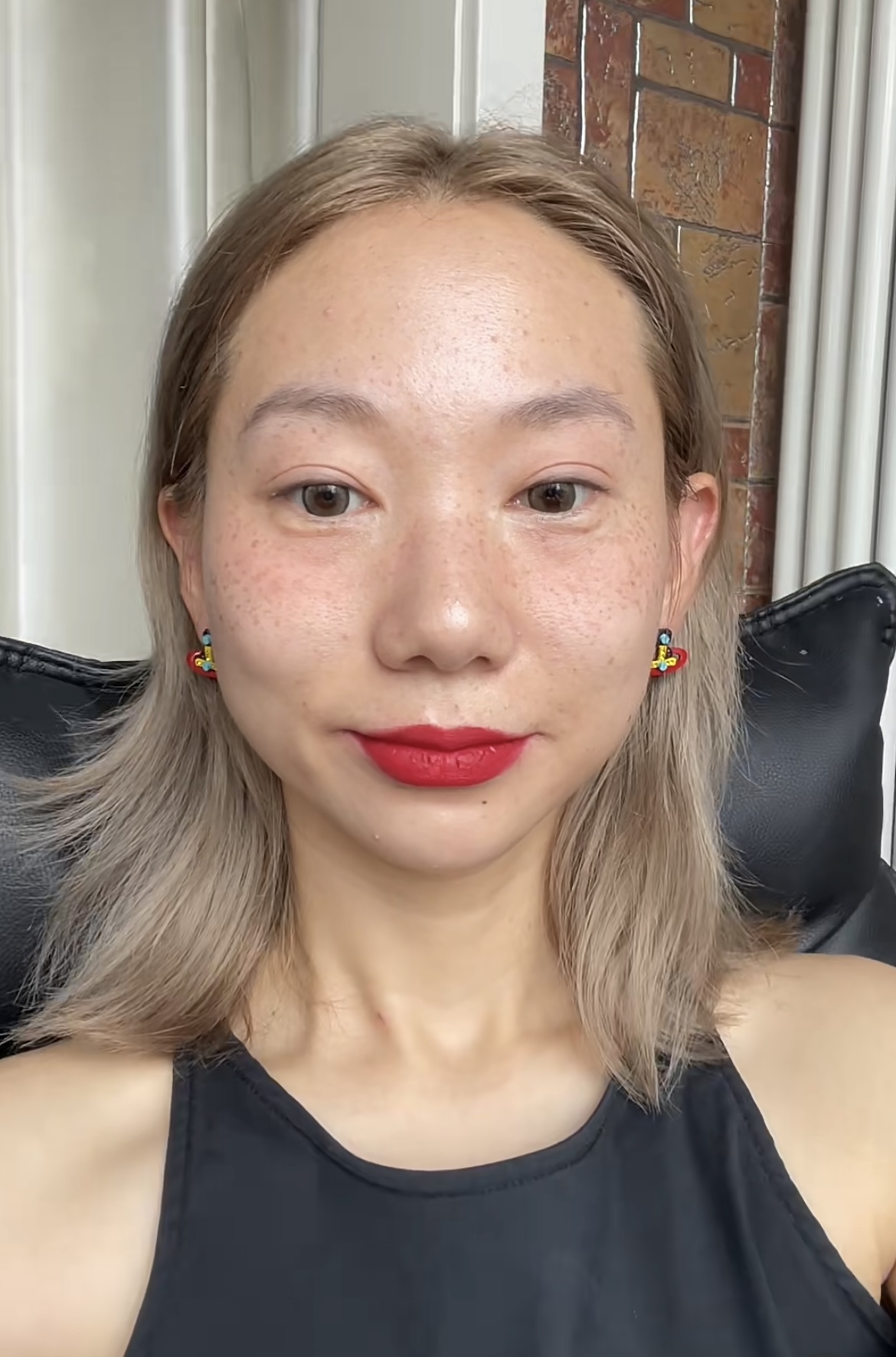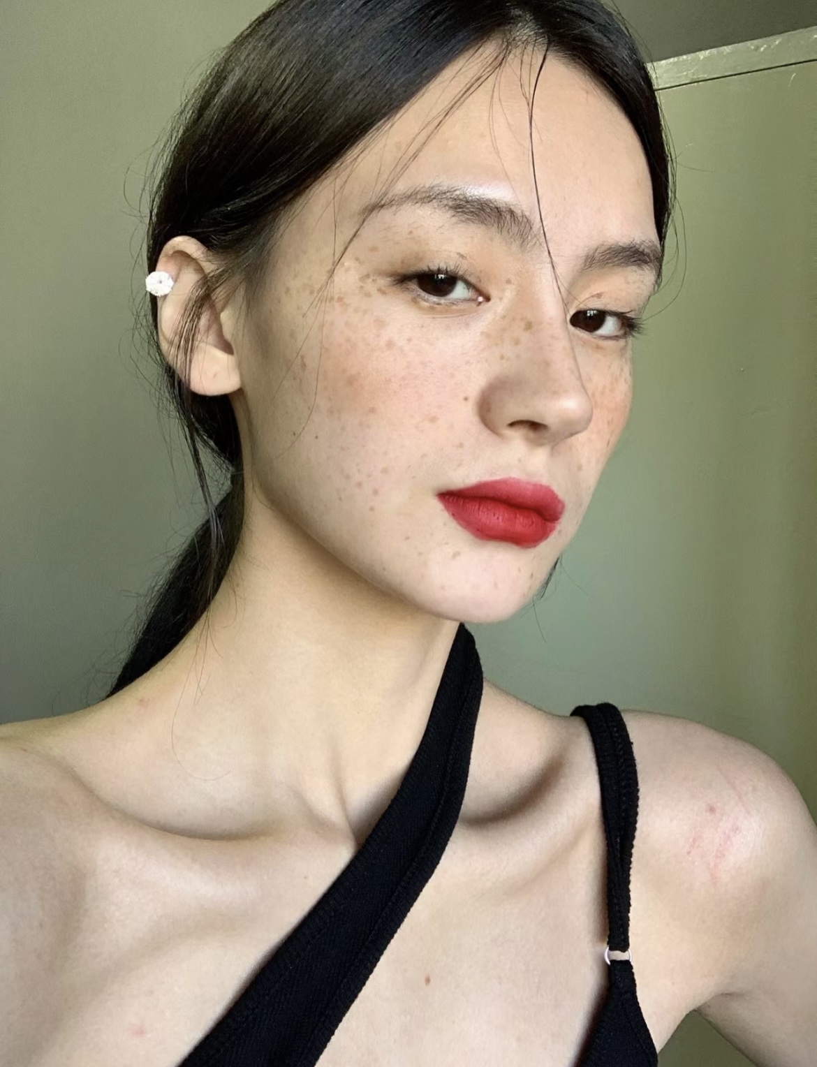 在完全素顏的臉上,只需輕輕一抹大紅色,鮮艷的顏色將你的視線牢牢抓住,令肌膚上的瑕疵,好似是膚色不均、色素沉澱、色斑等的注意力都被分散,視覺上有助均勻膚色。
