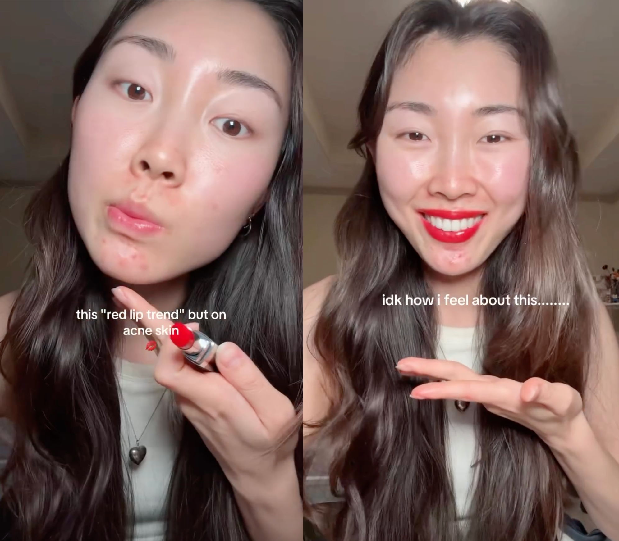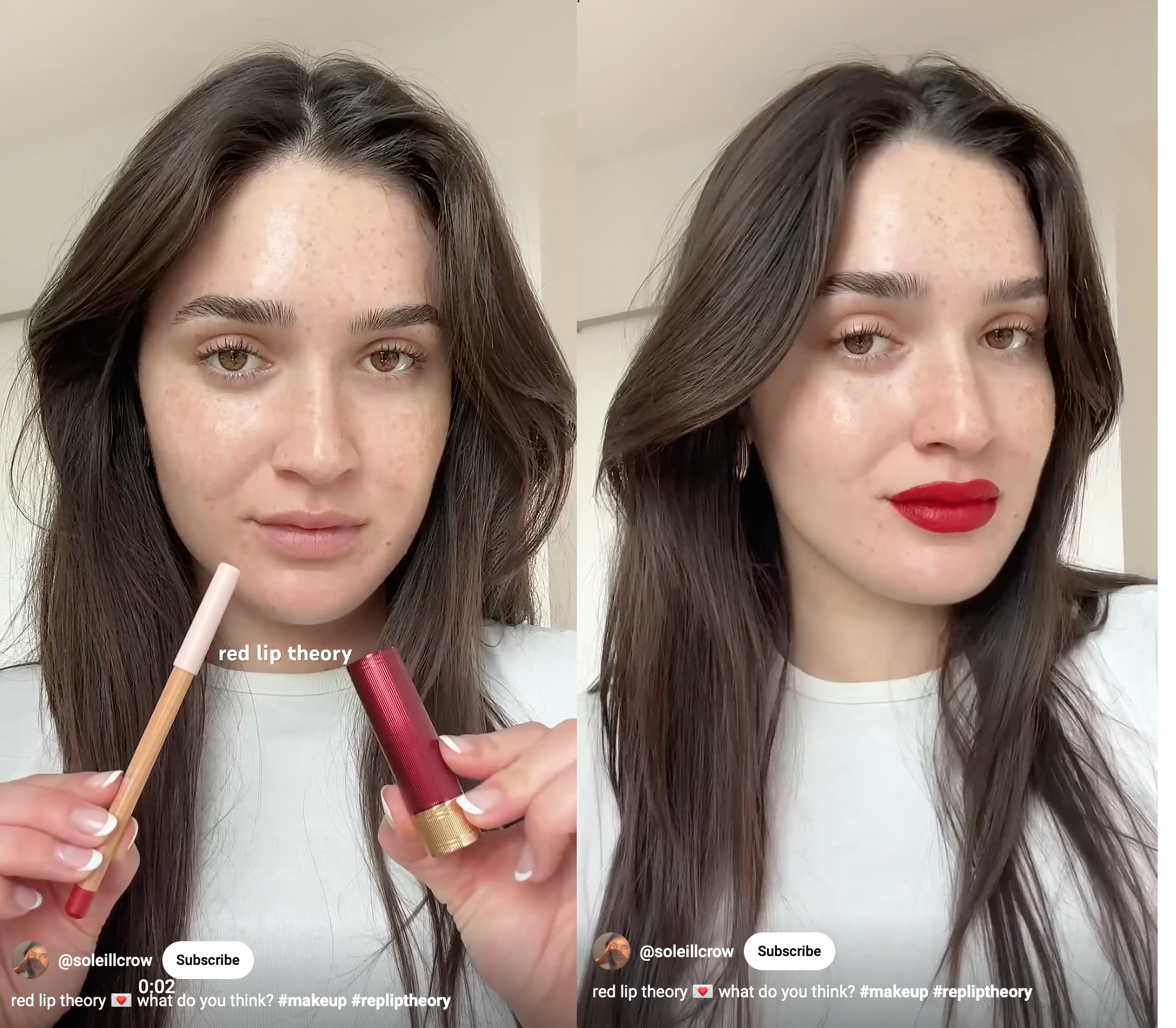 red lip theory是由beauty influencer The Lipstick Lesbians提出:「如果你臉上什麼都沒有,只塗了紅色口紅,你的皮膚看起來會更均勻。你用紅唇吸引了人們的注意力」她這一番言論立即引起熱話,更有大量美妝KOL開始進行實測。