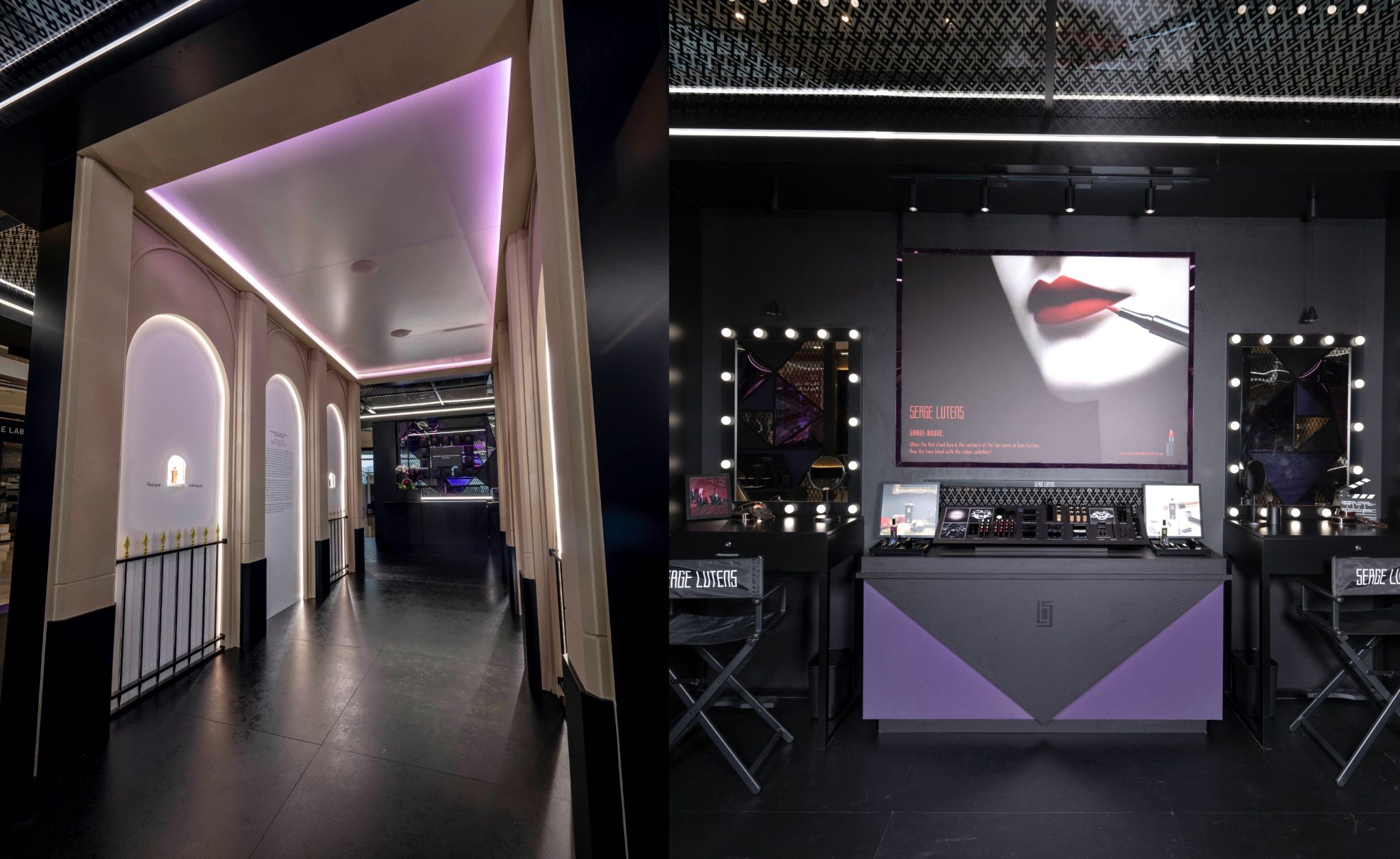 整個圖書館以光影設計概念,第一站必到的是巴黎皇家宮殿展區,展區將Serge Lutens於1992年創建第一間旗艦店的地方—巴黎皇家宮殿,帶到來你的面前!當中展示了四款限量珍藏香水展品,一飽眼福,圖書館中更設有Nécessaire de Beauté彩妝系列專區及Flacons de table吊鐘瓶系列專區,探索每一瓶香水及彩妝背後,Serge Lutens獨一無二的故事,同時讓你找尋及編寫屬於自己的篇章!