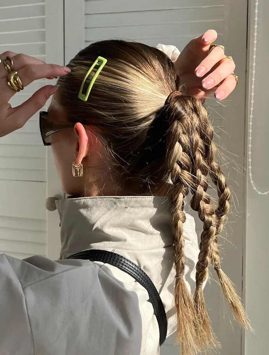 想營造健康俏皮感,可以一試這款高馬尾麻花辮,先將所有頭髮紥成一條高馬尾,將高馬尾根據自己的髮量分成多份,最後編成麻花辮。想整體造型更利落,可以用髮膠整理髮碎,令髮型看上去更整齊更有運動感。