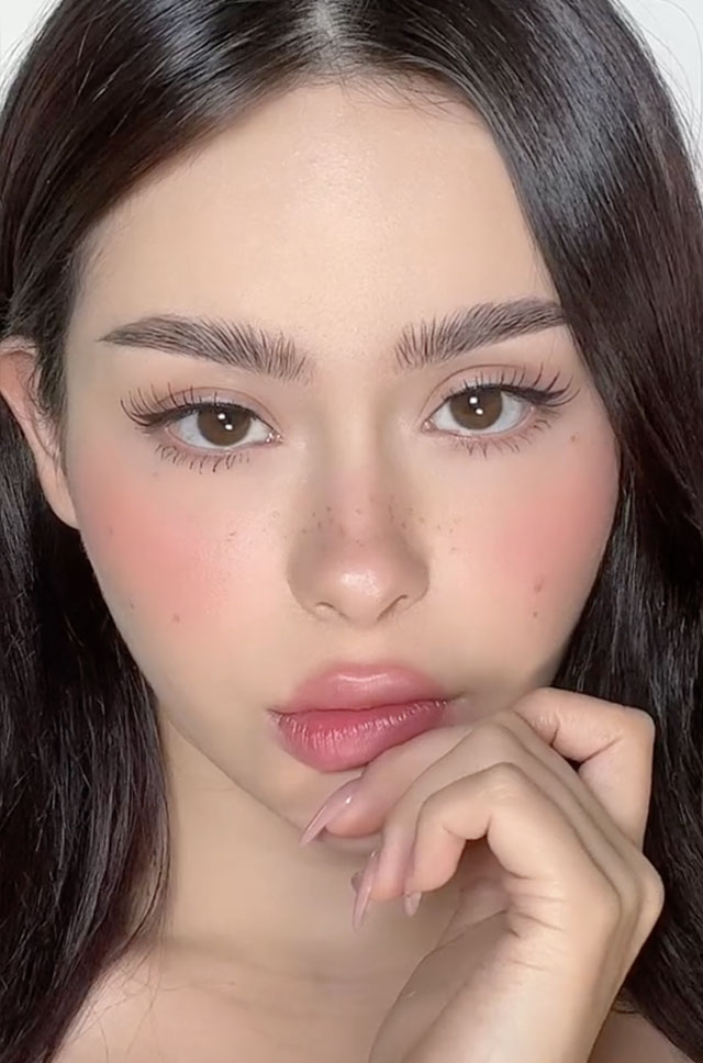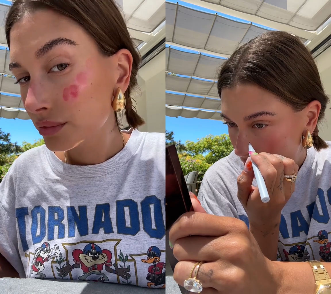 Hailey Bieber就曾經在社會媒體上分享過strawberry girl妝容步驟,除了採用士多啤梨色系胭脂外,亦會以畫上斑點模仿士多啤梨的籽,看上去非常健康可愛。