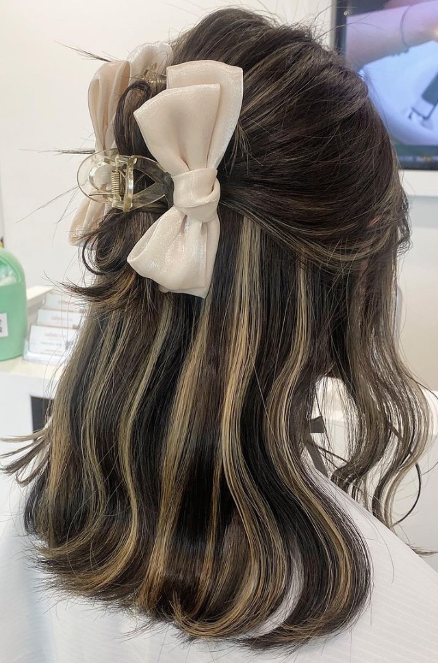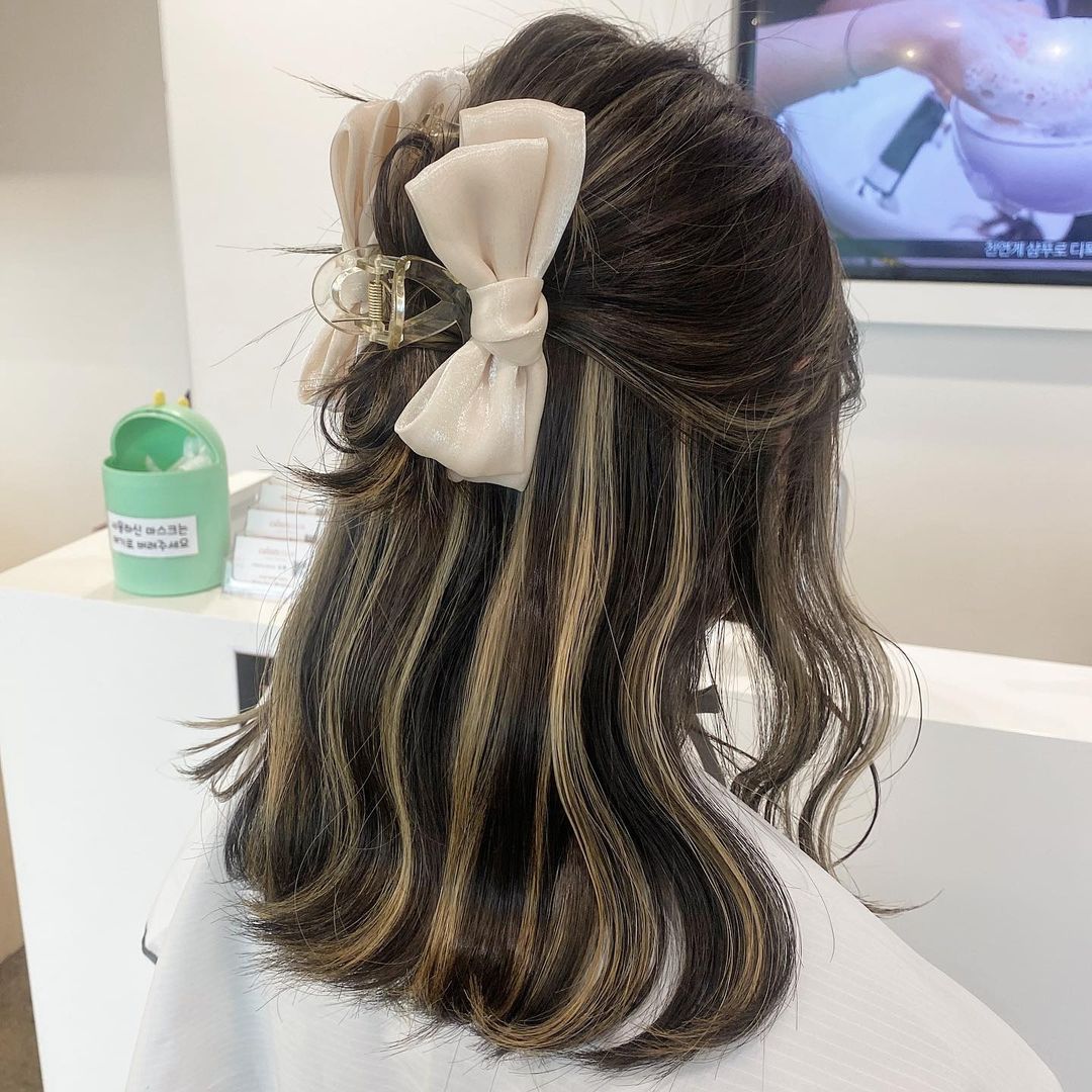 說到最經典的款式一定是麥茶棕X奶茶啡的深淺配色,挑染範圍只有一束,相對整頭染比較不傷害髮質。韓國女生更愛用銀色/白色調鯊魚夾形成強烈對比, 令目光集中在耳圈染上,搭配連身裙穿搭更可以打造出公主感覺!