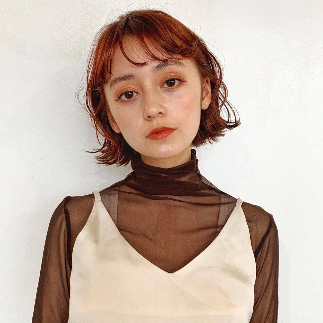 暗橘色當中帶啡色調,光澤感和亮度相對較低,在陽光底下閃閃發亮,但在室內又比亮橘色低調~無論是簡單的直髮,還是修飾臉型的八字瀏海,都能完美襯托出橘色的氣質與活力!