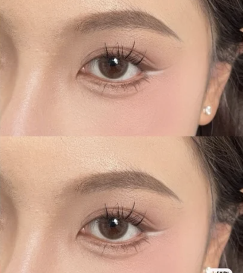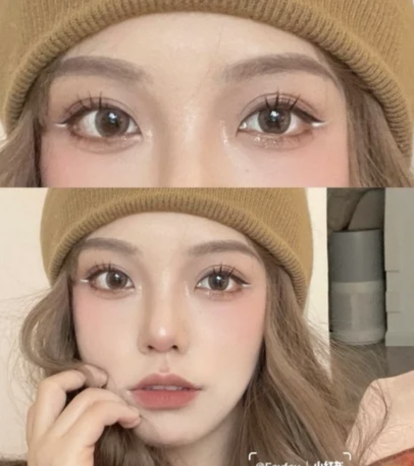 想打造無辜感眼妝大部分人都會將highlight點在眼頭位置,夏天不妨使用飽和度低的白色眼線膠筆輕輕畫在眼頭,配合臥蠶令整體眼妝更自然溫柔,柔化眼神,而且打亮效果比使用閃粉眼影更明顯。