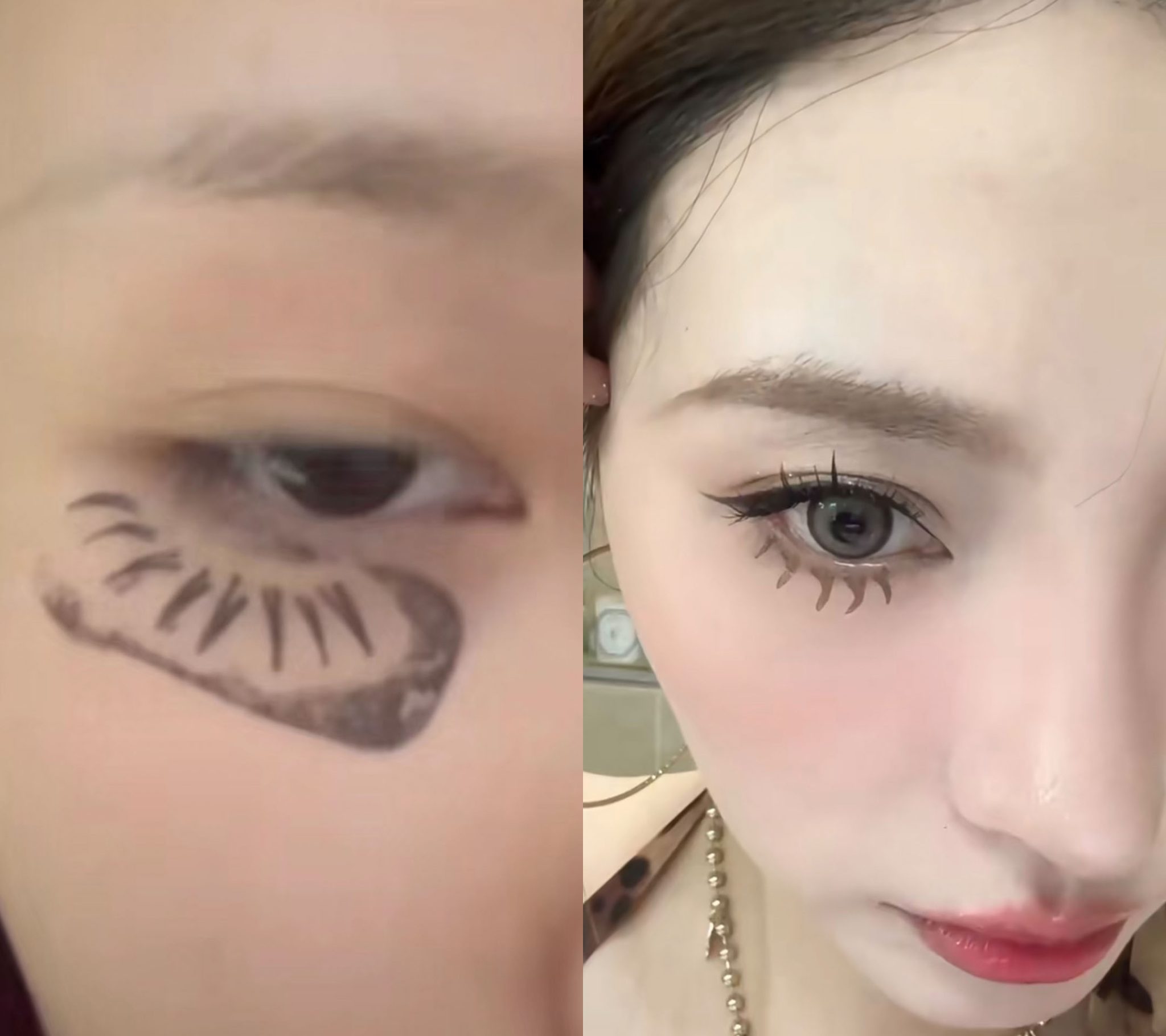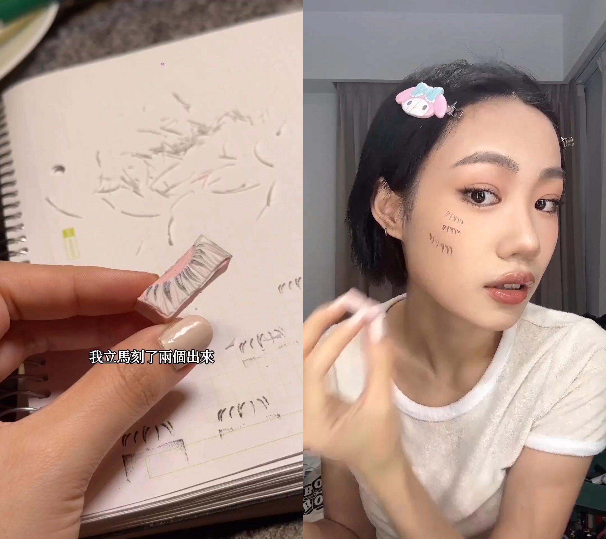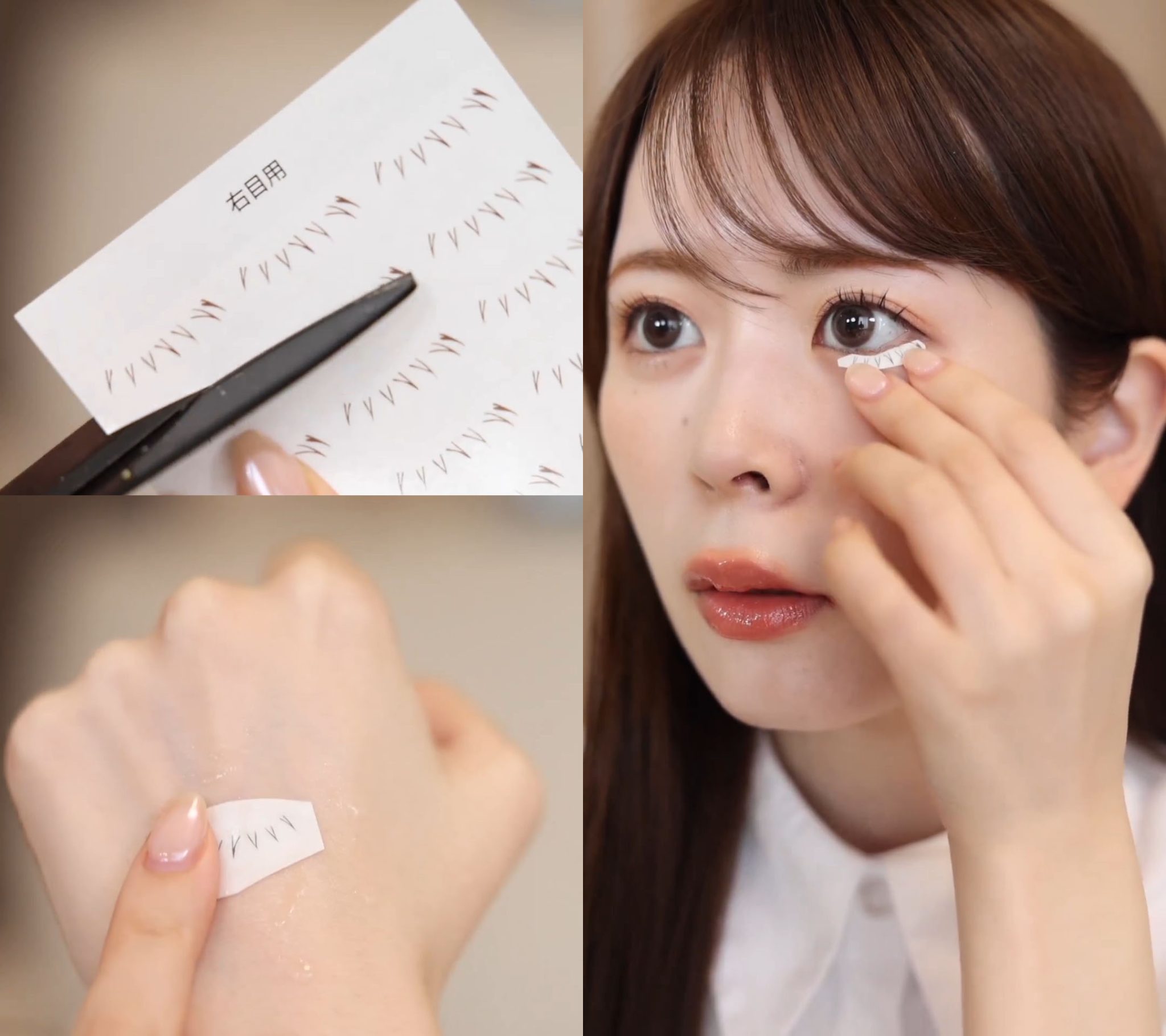 不少日本女生都在用下睫毛紋身貼紙,用法就同一般紋身貼紙一樣,剪裁出你需要的圖案,噴濕貼紙,再貼在你想的位置上即可。