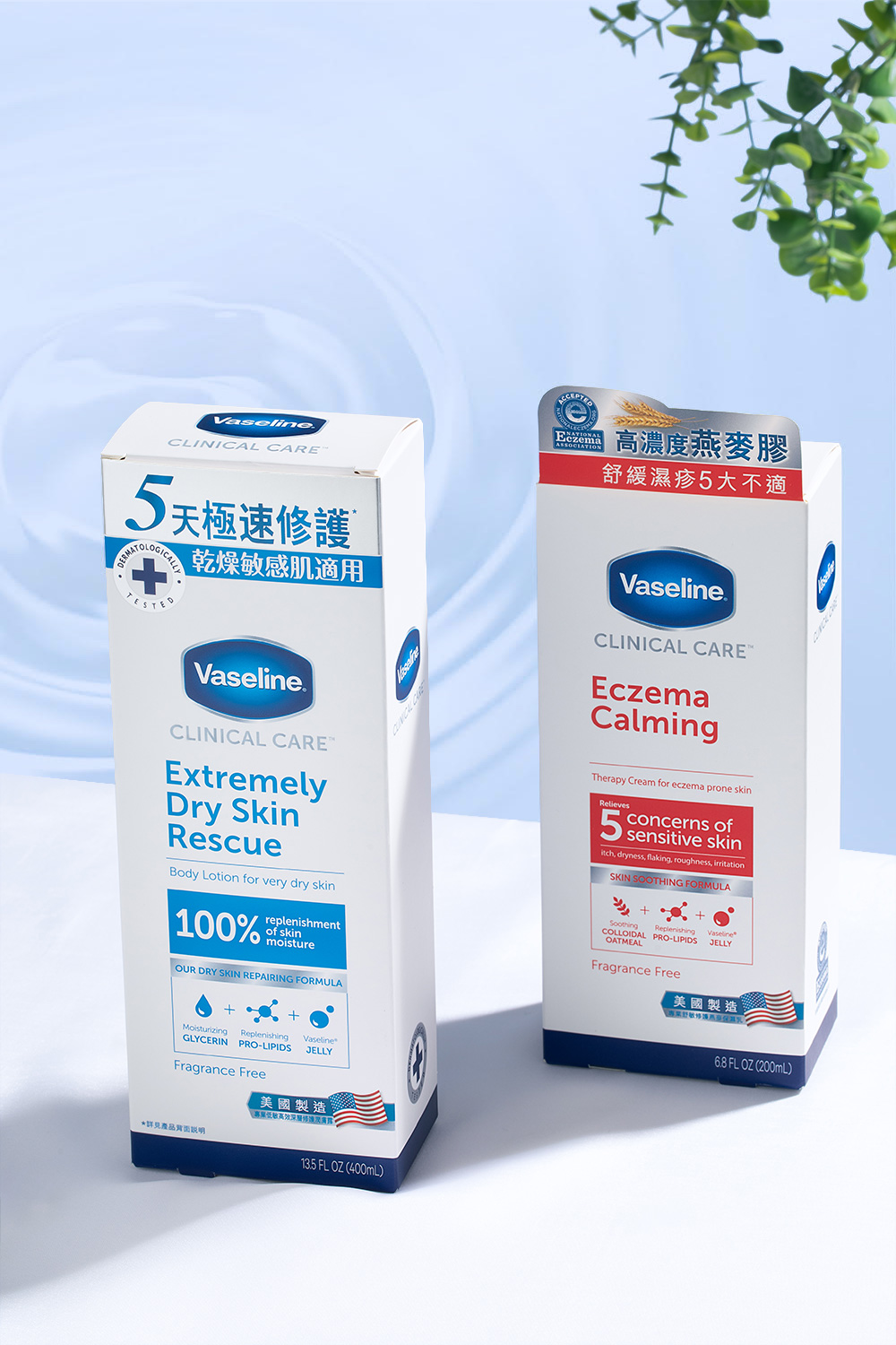 [凡士林 Clinical Care™專業低敏高效深層修護潤膚露]適合亁燥敏感肌,無香料低敏感配方,經皮膚科專家測試,實驗證實能舒緩乾燥痕癢,肌膚狀態能明顯得到改善⁺⁺,5天就能修護極乾肌*,24小時長效保濕#。而近90%受訪者認同產品溫和親膚** 。[凡士林 Clinical Care™專業舒敏修護燕麥保濕乳]則適合濕疹肌,內含高濃度燕麥膠,更獲得美國國家濕疹協會認可,有效舒緩5大症狀:痕癢、亁燥、脫皮、粗糙、敏感。各位sis可根據自己的膚質和需要,挑選適合自己的潤膚露,守護你的肌膚屏障。
