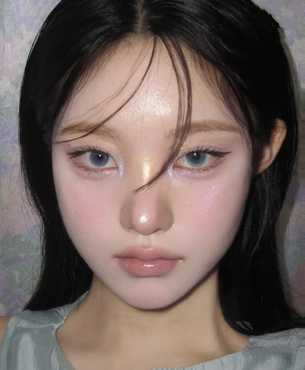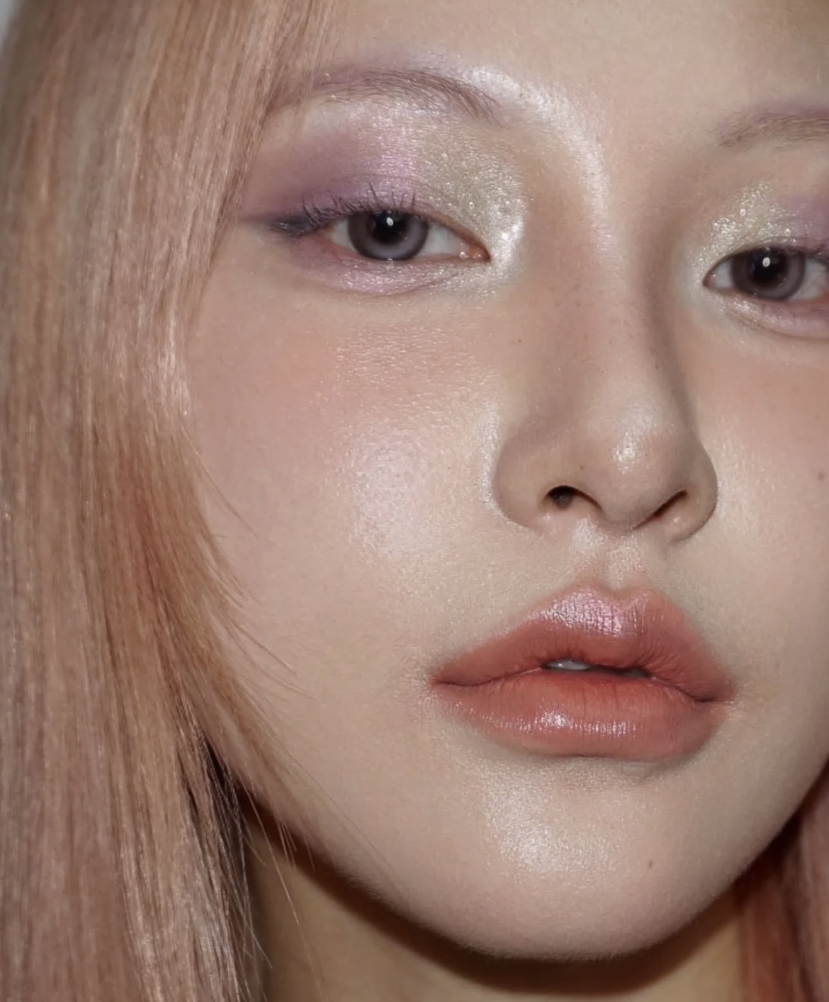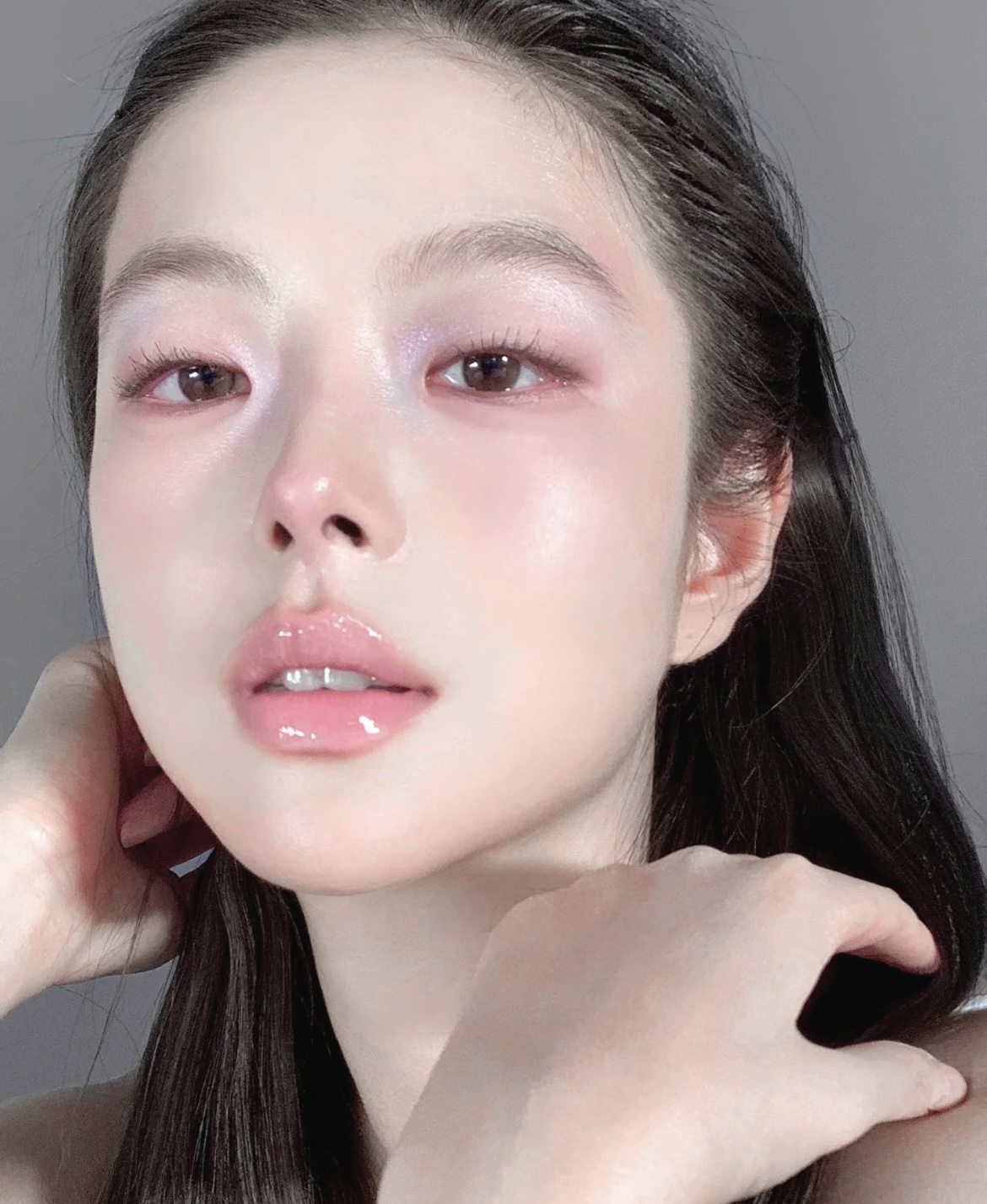 底妝方面強調光澤感與薄透感,就好像自然透出來的好膚質,切勿使用過於厚重或霧面的底妝,會令妝容失去透明夢幻感!最後塗抹上唇釉或唇蜜,營造水潤感!