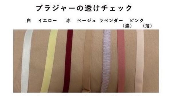 在學生時期,相信大多數女生都會內搭白色底衫同內衣預防透底,但這個做法可能並不正確!日本內衣品牌BELLE MACARON的負責人小島美久日前進行一個小實測,更把結果分享在Twitter上。實驗中將7條不同顏色的肩帶放在皮膚上,在以一塊白布蓋住,測驗各種顏色的透底程度。