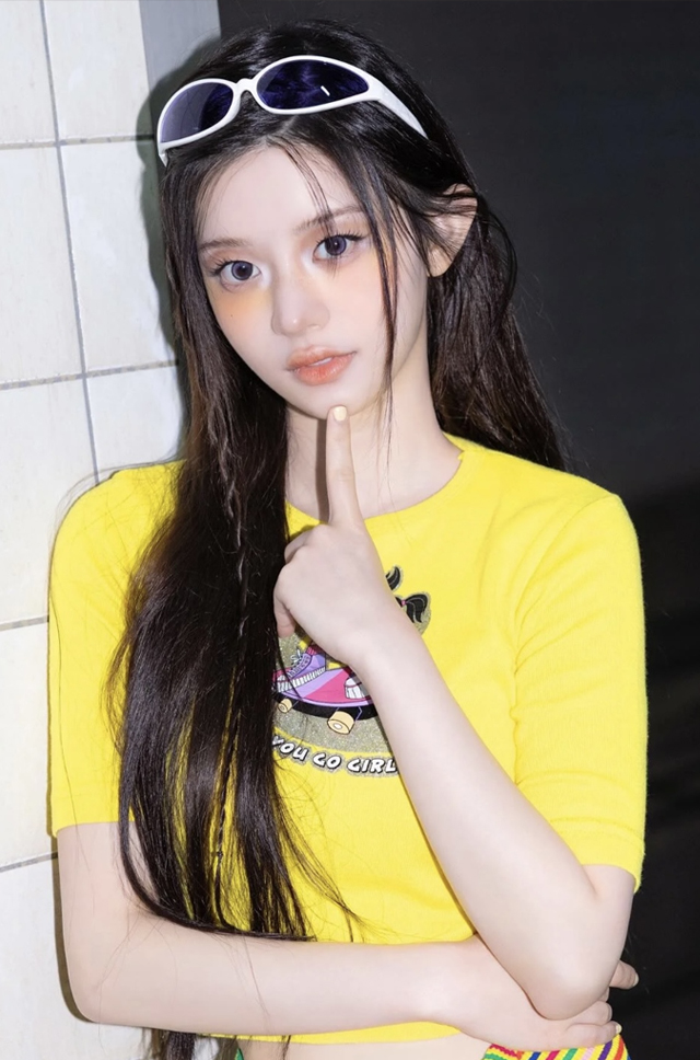 可以依照不同臉型打上屬於自己的胭脂位置和形狀,例如ILLIT成員Minju就將黃色胭脂放在眼下位置,與眼妝巧妙融合,同時讓妝容重點集中於面中上方,就能達到修飾、拉長臉型的小臉效果!