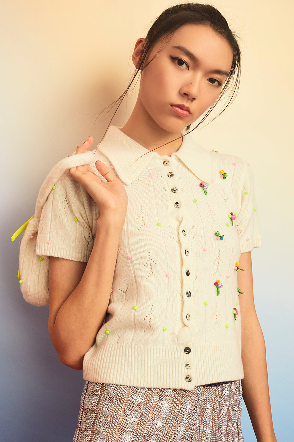從她們的服飾上也可看到不少心思,當中用了不少給人慵懶春日感的針織服,整件事很夢幻,十分合適這首歌曲。而這些針織服更是來自我們香港的設計師品牌!