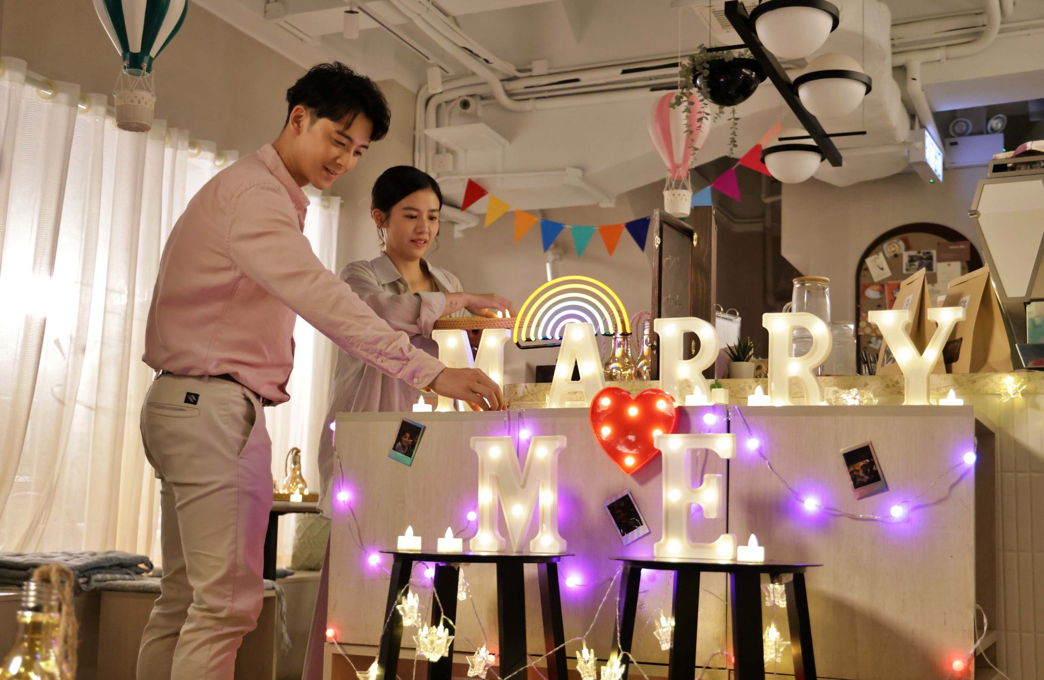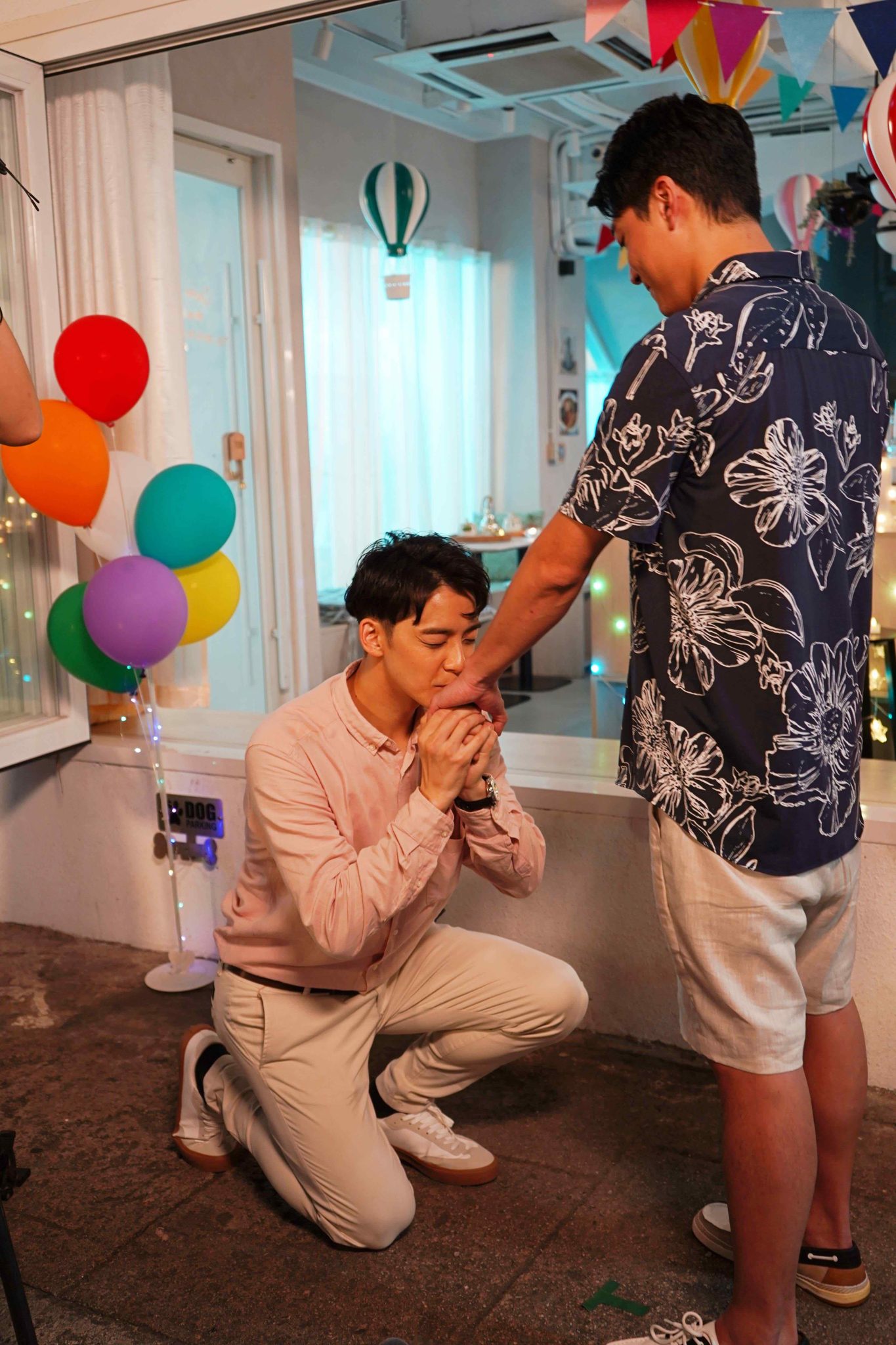 Viu Original本地原創劇《The Singleton呈獻: 轉角浣紗街》,由吳肇軒、楊偲泳(Renci)、陳穎欣(Yanny)聯同岑珈其、湯怡、楊天宇等主演,講述位於浣紗街的「1/2 Café」所發生的愛情故事,除了幾位「影壇新貴」外,劇集亦邀請了多位「串星」參演,當中余德丞更首次挑戰hehe角色,跟飾演另一半的鄒文正上演求婚戲,鏡頭前二人表現溫馨,又抱抱又錫手,不過鏡頭後卻大叫尷尬,狀甚惹笑。