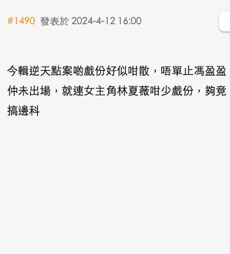 不過,有不少薇薇粉絲在討論區留言,表示不滿,指身為第一女主角的林夏薇戲分比預期少,部分粉絲更表示上輯《逆天奇案》林夏薇戲分已不多,原以為續集會有改善,卻是大失所望,戥薇薇不值!有網民留言:「今輯逆天奇案啲戲份好似咁散,唔單止馮盈盈仲未出場,就連女主角林夏薇咁少戲份,夠竟搞邊科」。