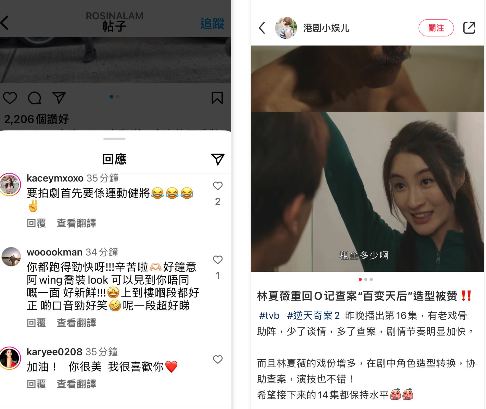 而日前新一集中,Wing 姐終於火辣登場,劇情講到Wing離開心理服務課,重投前線工作,再度「出勤」喬裝變換多個造型查案。除了以人妻少婦眼鏡Look示人外,今集大騷索爆身材更以超貼上衣、纖腰腹肌長腿,造型非常養眼!網民又大讚薇薇今次的造型多變,根本就是百變天后!
