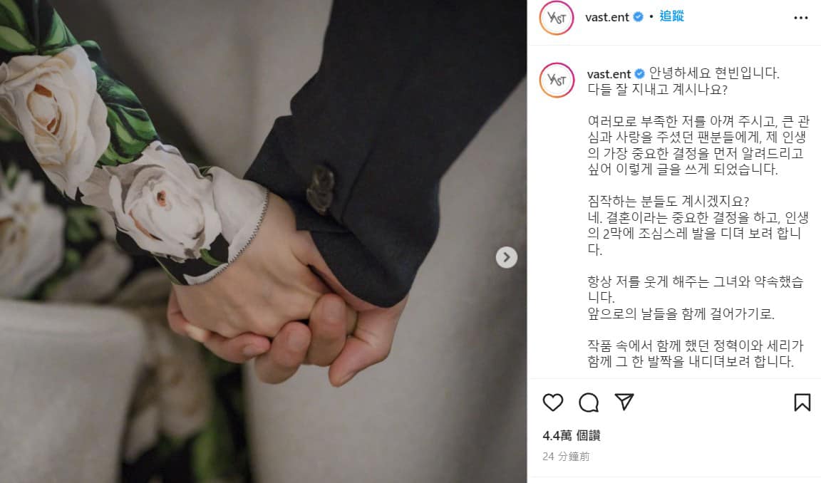 玄彬和孫藝珍自從去年宣布認愛後,二人的正面形象一直獲粉絲和媒體睇好可以拉埋天窗,更不時傳出婚訊但都未獲承認。直到今年2月中在他們拍拖一年後用「手寫信」甜蜜宣布結婚,不少網友都認為是近期最好的新聞,二人的婚禮獲封為世紀婚禮!
