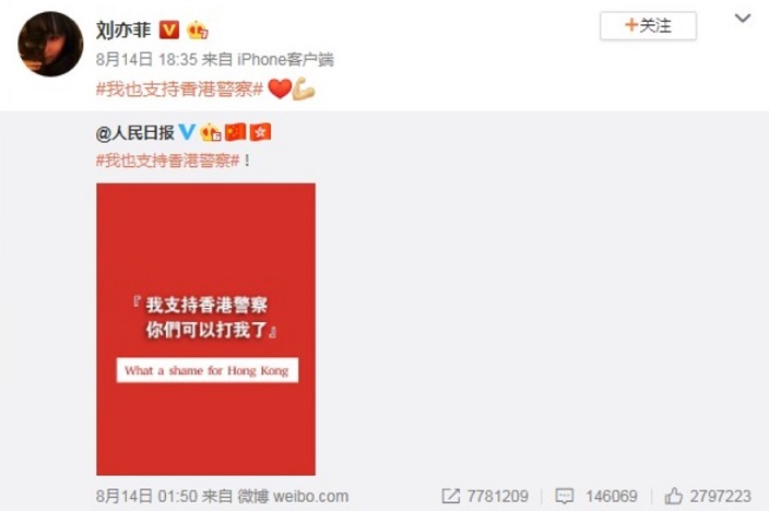 雖然國籍問題引起不少網友質疑,劉亦菲都未有回應事件,而中國外交部發言人趙立堅被問到對劇集《夢華錄》的看法時就力撐劉亦菲,「她此前發表過力撐港警的言論,她是一個真正的中華兒女!」