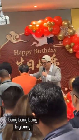 片段在Twitter瘋傳,見到勝利與一班好友在慶生場地玩到勁興奮,背景音樂放著BIGBANG的歌曲《BANG BANG BANG》,勝利則拎咪高風唱跳。