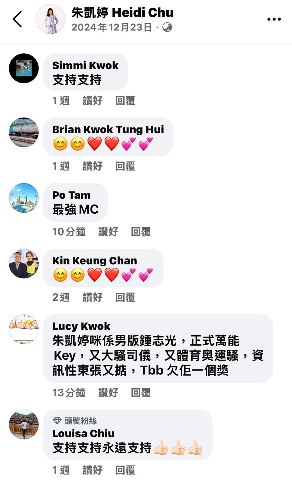 其實朱凱婷不單是「奧運五朝元老」,更是無綫收視冠軍節目《東張西望》的台柱,亦是Tvb MC吸金王,為不少大型節目擔任司儀,有網民對於她一直都未獲公司頒發任何主持奬項,替她感不值。