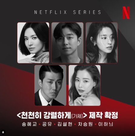 韓國視后宋慧喬終於再接拍新劇!日前Netflix宣布將會開拍由韓國金牌編劇盧熙京的撰寫的新作《慢慢地強烈地》,而男主角更是找來男神孔劉,兩大神仙顏值演員合作,讓不少粉絲超級期待! 新劇除了有孔劉、宋慧喬之外,演員陣容還有車勝元、李荷妮以及金雪炫等,全部都是實力派! 據知,《慢慢地強烈地》設定在1960至1980年代的韓國娛樂圈,故事講述的是一些身世平凡、卻懷抱璀璨成功夢想的人們,投身於這個充滿挑戰的行業,並在過程中經歷成長。在上個月韓國網站上已出現路透相,見到孔劉已剪上復古髮型!作為製作方之一的Netflix將投入接近4億港元拍攝,不過上架日期則未有公布。 BY DH 11 February 2025