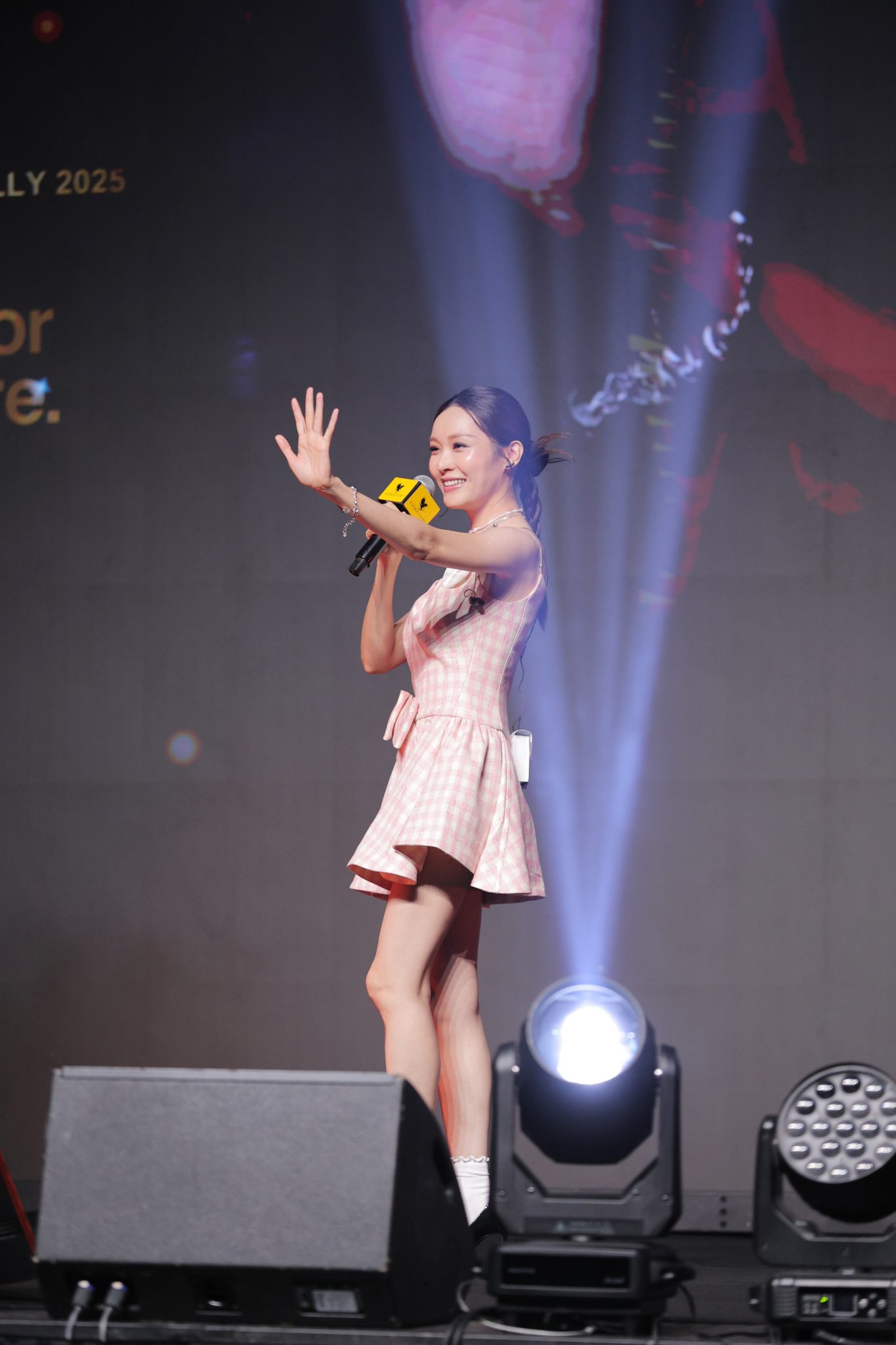 以一身粉紅色背心短裙上陣的Ali,大曬長腿仙氣十足,甫出場已掌聲如雷。對於離巢後選擇自組工作室,Ali在台上分享走入人生新階段的心情:「每一次踏入新階段,都會有自己打擊自己嘅聲音,呢啲時間我會不斷鞭策同認識自己,努力計劃下一步點做;以前只係演員身份,淨係演戲,好幸福,但而家要兼顧好多嘢,大至將來計劃,小至工作室Logo都要自己設計。」