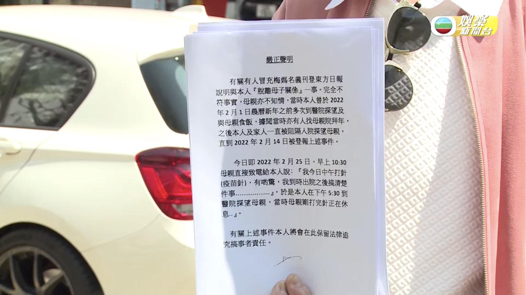 梅啟明表示日前與媽媽通電話,對方對登報一事全不知情,他因此質問負責照顧媽媽的護士,發現是40多歲、弟弟的兒子在背後操控,當他質問侄仔時未獲任何回應。
