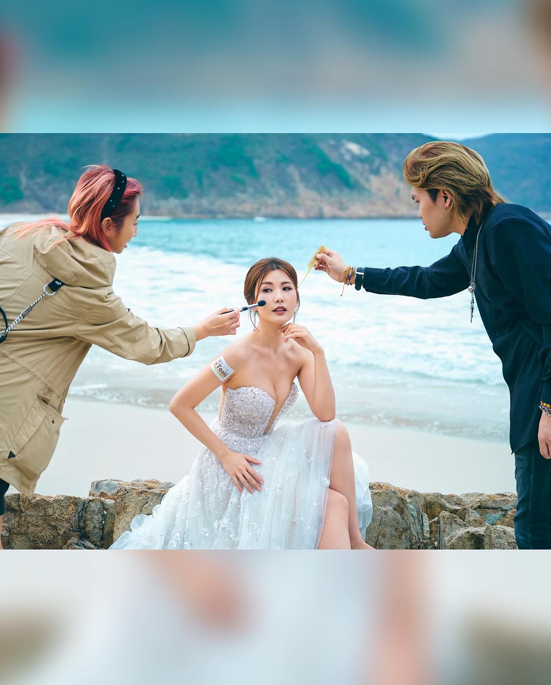 Osanna分享拍攝廣告感受,透露首次在寒風下影泳衣照,凍到「騰騰震」,幸得老闆娘及團隊細心照顧,她憶述:「第一次喺咁凍天氣喺沙灘着泳衣同婚紗拍攝,赤腳攀石涉水瞓岩石樣樣都係新嘗試。辛苦晒老闆娘Ivy、仲有當日嘅工作人員,雖然當日氣溫好低又刮大風,但係都將我照顧得好好,一cut機就着返件羽絨,所以先至有咁好效果嘅相同片。」趙璧渝預告,正式廣告靚相即將面世,敬請大家期待。
