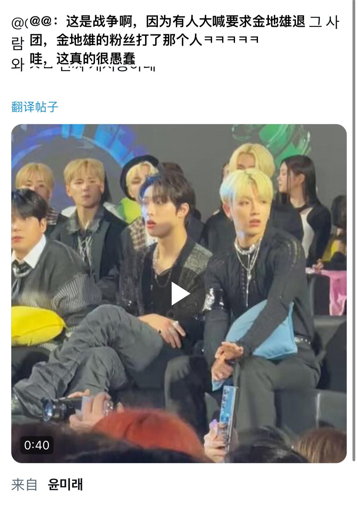 另外限定男團 ZB1 成員金地雄早前因參與線上簽名會時,疑用粗口鬧分手,導致頒獎禮上台下有粉絲大叫退團,引起另一批支持他的粉絲不滿,所以雙方大打出手。而當時在場保安並未察覺,反而是坐在台上的 歌手發現才緊急通知保安維持秩序,避免更大的衝突發生。