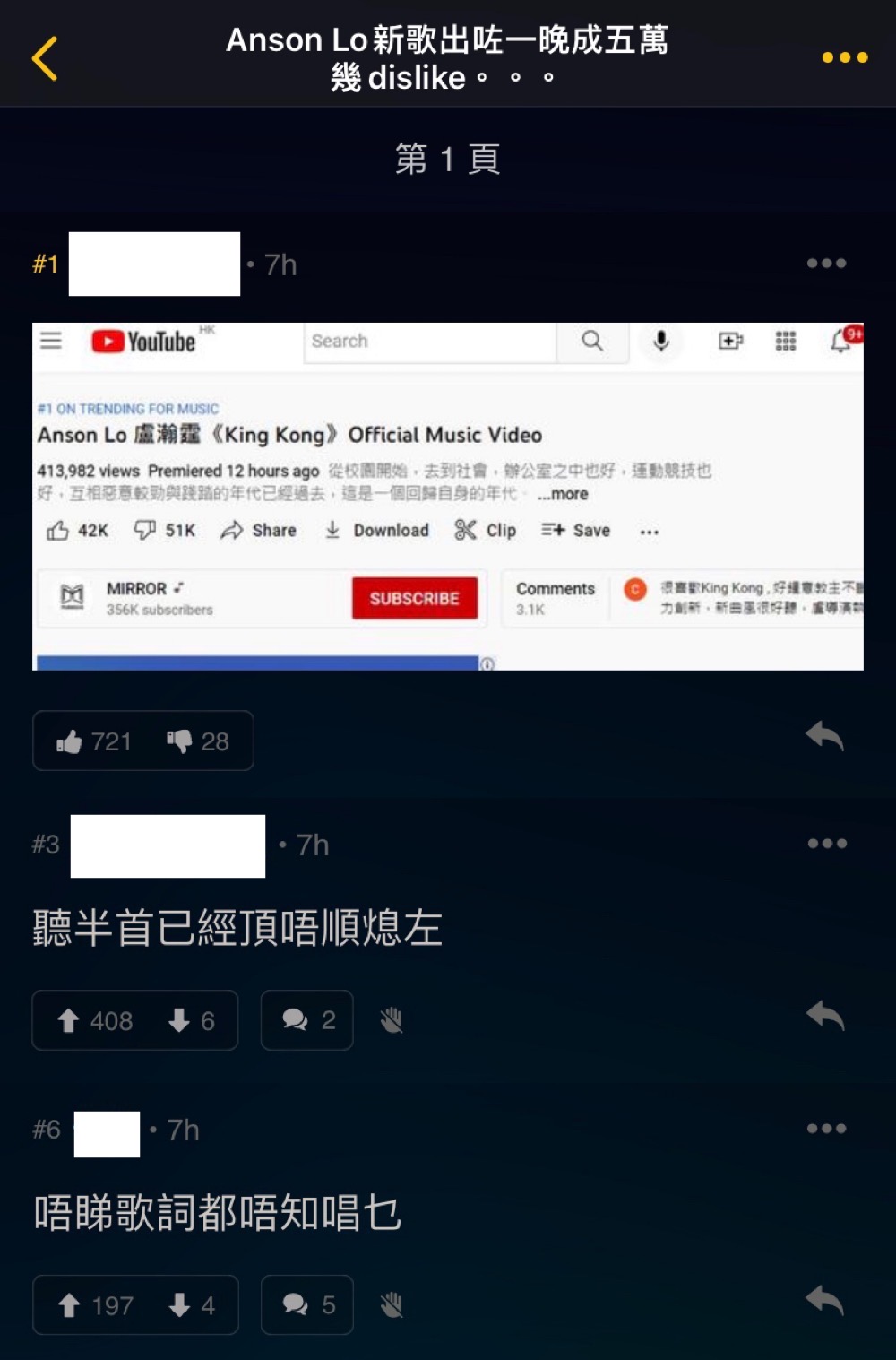 MIRROR 成員 Anson Lo 盧瀚霆昨日推出全新跳唱歌曲《King Kong》,更首次擔任 MV 導演,以全新造型騷麒麟臂!同時 MV 亦大玩特效,以虛擬背景營造多個超現實場景,令一眾神徒(Anson Lo 粉絲名稱)表示很有突破!但這次新歌的曲風卻不是人人喜歡,有不少網民直指新歌難聽,與神徒們意見兩極。