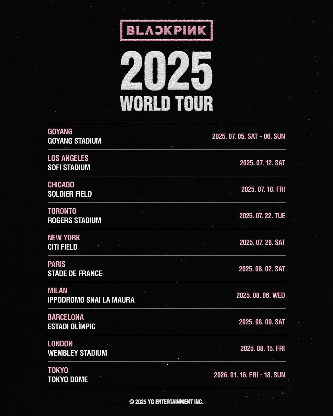 韓國女子天團BLACKPINK前年年底宣布單飛不解散,這2年來4位成員各自專注開展個人事業,都獲得非常好的成績。而今年年初YG娛樂亦宣布BLACKPINK將會合體,推出新專輯之餘亦會再次展開世界巡迴演唱會,而早前落實將於7月以首爾為起點開騷舉行 《BLACKPINK 2025 WORLD TOUR》,日前票價公布,讓不少粉絲表示「不能接受」!
