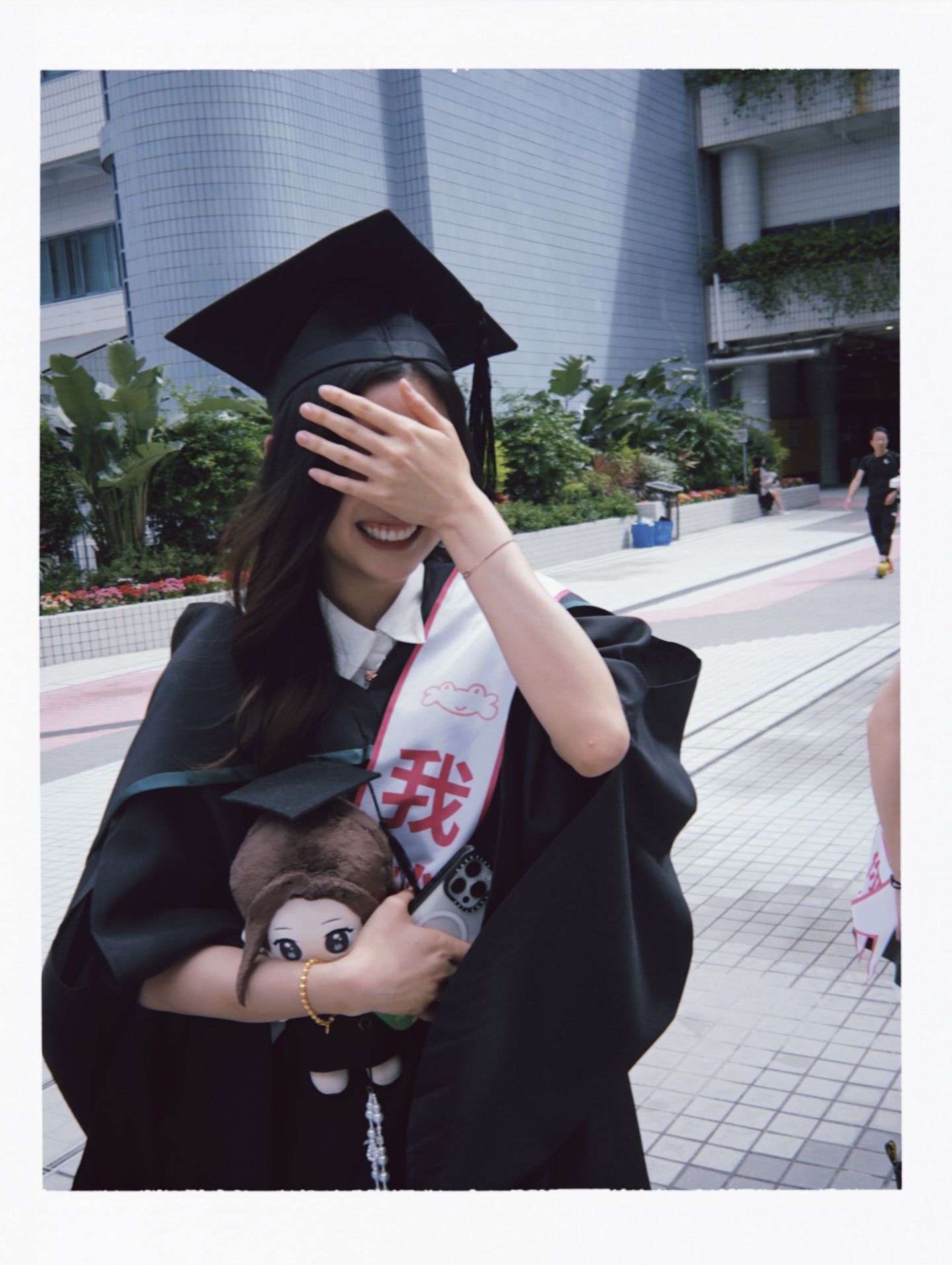 本地女團COLLAR中的「忙內」成員Candy在2020年在DSE考獲佳績入讀香港城市大學社會科學學士,主修心理學,是團內的「隱形學霸」!忙於工作的Candy日前終於正式大學畢業,COLLAR成員們驚喜現身畢業禮,而隊長Gao亦有在社交平台分享靚相!