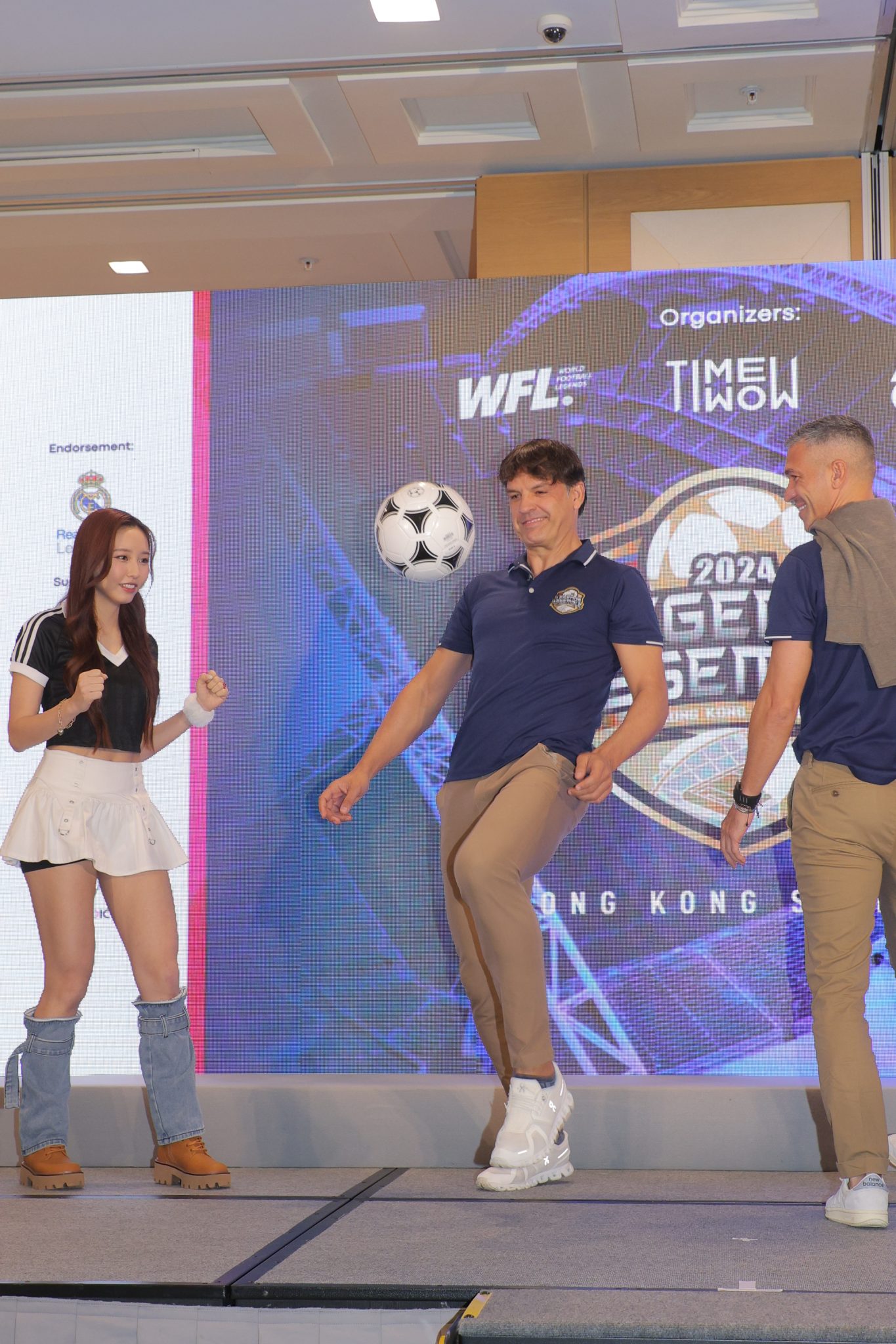 「足球初哥」Ivy果然不負所望,於台上與兩位球星大玩「的波」,獲讚她的基本功扎實。路爾斯·加西亞及摩連迪斯不但向Ivy傳授控球技巧,更贈送了簽名球衣作為見面禮。對於能獲得名師指導,Ivy笑言獲益良多,並表示屆時必定會入場觀賞表演賽以示支持,欣賞眾多經典球星的風采。