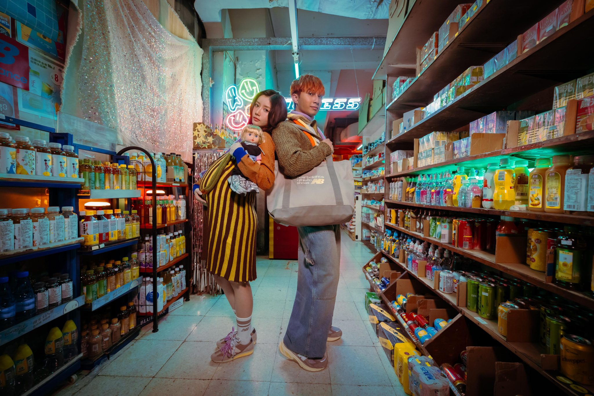 故事圍繞著店內一對彌足珍貴的New Balance 1300JP,Jessica 與 Billy Choi則穿梭於充滿復古懷舊氣息的港式士多,展開一場尋找傳奇鞋款的時尚探險。拍攝期間,無論是店員、情侶、夫妻的角色都默契十足,一個眼神就知道對方下一秒的動作如何。事後Jessica笑說:「同Billy合作已經好有默契,本來可以好快收工,但佢成日即興rap對白,搞到我成日忍唔住笑場要NG!」Billy則大讚:「Jessica演技真係冇得頂,每個眼神同動作都交足戲,同佢拍嘢好舒服!」