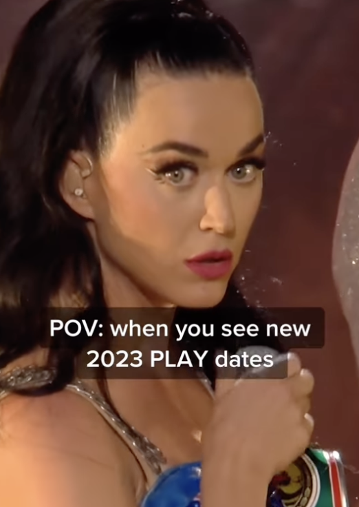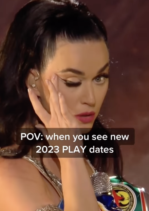 Katy Perry 日前在社交平台上載疑似面癱的畫面,並寫下:「歡迎所有歌迷,明年來美國拉斯維加斯看『壞掉的洋娃娃』的演出!」(POV: When you see new 2023 PLAY dates」有關身體出現問題的疑慮都被 Katy Perry 逐一擊破。
