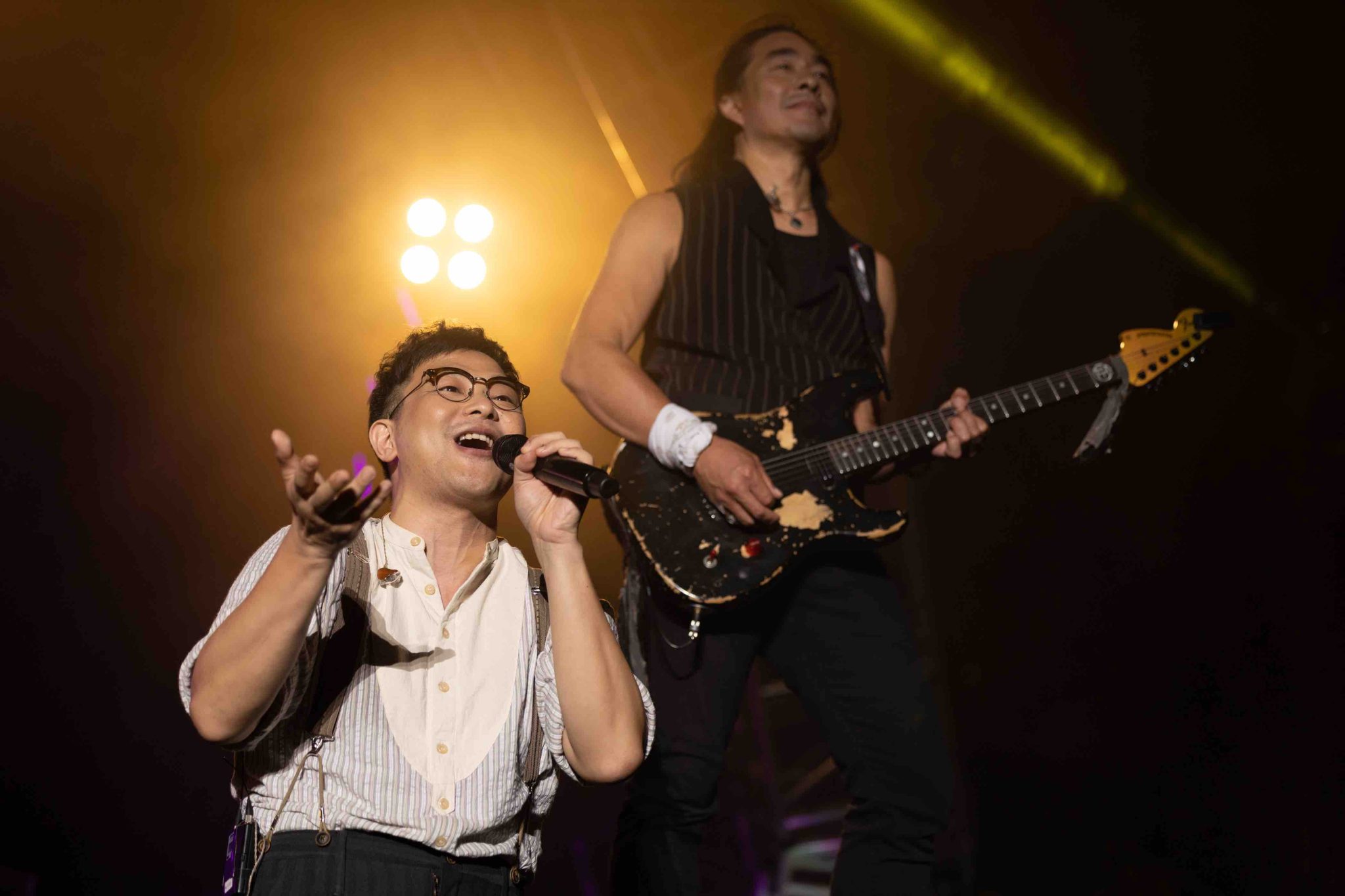 位於西九文化區的「Wonderland 竹翠公園」亦勾起了6號@RubberBand,早年曾住尖沙咀的跑步回憶:「當時我住在尖沙咀時,是一段不大開心的時刻,於是我經常會跑步為自己打打氣,所以經常跑到這邊的海濱公園,我是會聽著歌一直跑,不過大部分都不是RB的作品,只是最後衝刺的時候就會聽返我們的歌,想分享這故事是想告訴大家,不管你跑得多慢;也不需要擔心。」而當他說到一半時,音樂會導演提醒6號@RubberBand好像未拉好褲鍊,而令到他大為緊張即使躲到阿偉@RubberBand身後檢查,最後發現是虛驚一場,而剛好發生這小小「意外」反而令到氣氛歡樂起來,就好適合大家切入去聽一連幾首包括《逆流之歌》《前面尚有一萬里》到《天連地》這些充滿能量的作品!