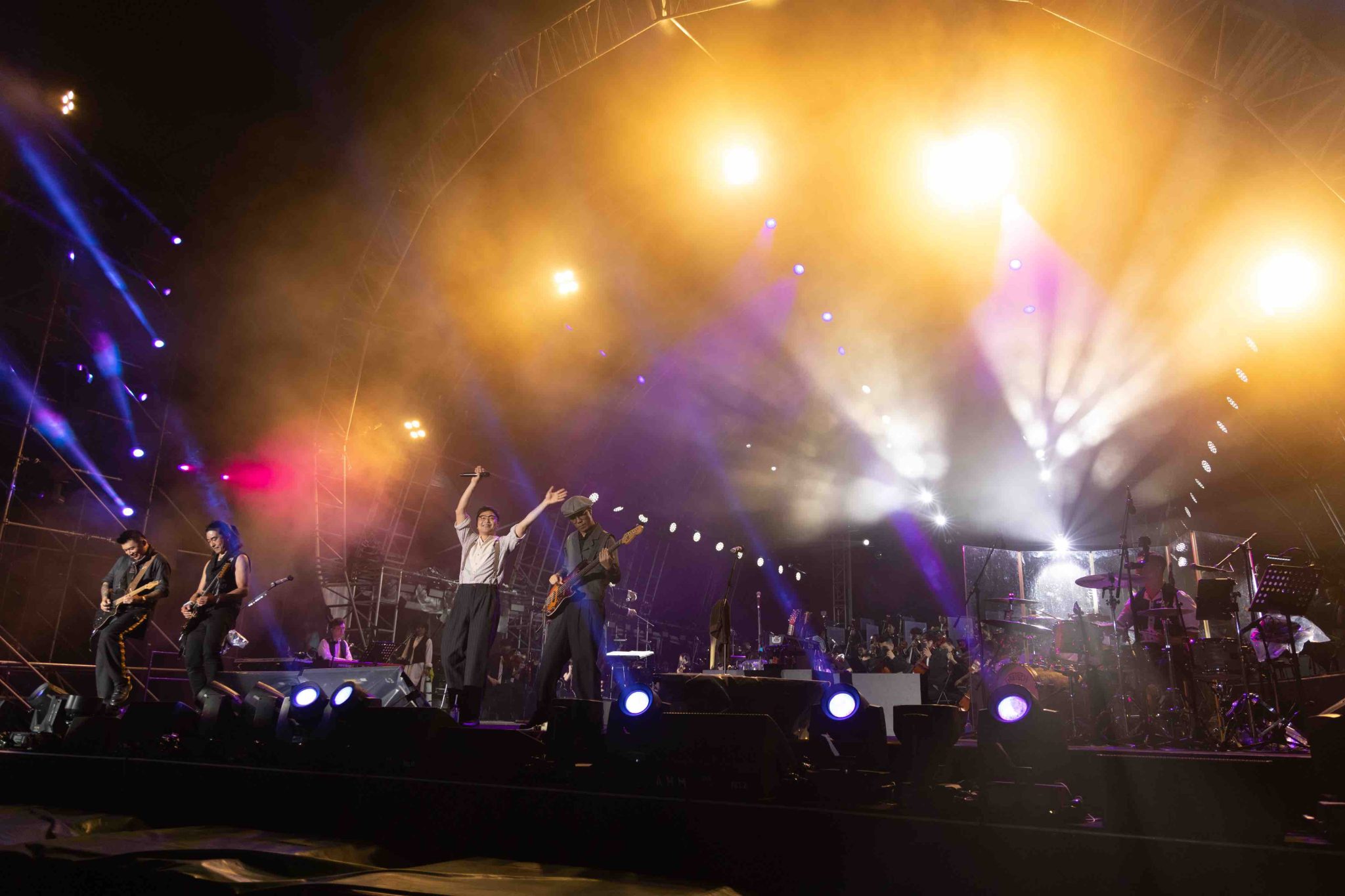 RubberBand x 香港節慶管弦樂團(Hong Kong Festival Orchestra)“Live by the Harbour” 音樂會,來到最後一場,而今天感謝天公造美,成全了大家所集的氣,讓觀眾齊齊在「Wonderland 竹翠公園」享受RubberBand (RB) 和香港節慶管弦樂團(HKFO)帶來的精彩演出!經歷四個多月的耐心等候,6號回想道:「我們都留在家,大部分時間街上沒有太多人、食肆亦沒食客、表現場地無人,這幾晚我們終於齊齊整整回到這裡,儘管仍戴著口罩,不過我感到你們的眼神是一種堅定要來到這裡,我不敢肯定大家口罩下是否有笑容,至少這裡讓一班有共同價值觀的人聚在一起!這種等待很不容易,謝謝你們沒有退票亦沒有放棄我們。」