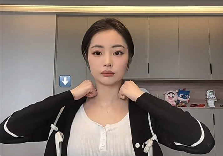 同樣先在頸部搽上護膚品或精油,然後再將雙手握拳,用關節處從耳根處向下刮到鎖骨位置,可以在鎖骨處停頓個三秒,重複15次,促進血液循環。