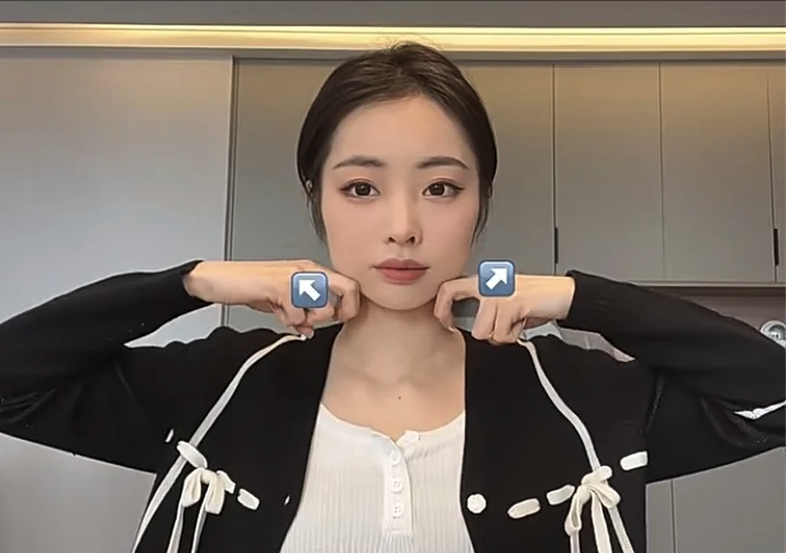 在第3步前可以先在手搽上護膚品或精油,其後先將雙手食指&中指彎曲,用關節處勾住下顎線,從下向上推,兩邊各做20 次!