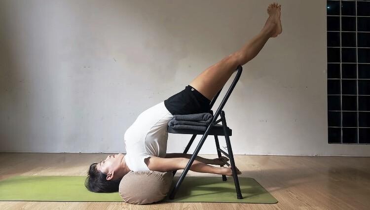 輔具:2根彈力繩、2塊瑜珈磚、1顆枕頭(也可用毛毯/小棉被代替)