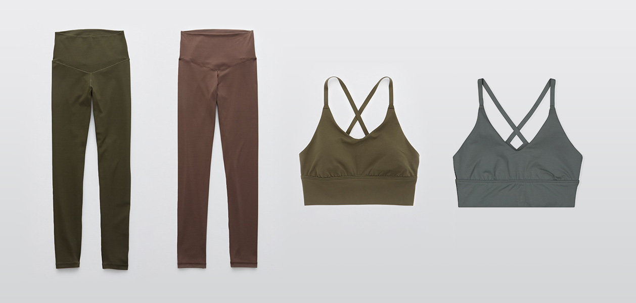 有自信的女生最美!在家工作亦可穿得有型時尚,編輯大推Aerie人氣喇叭leggings,採用Real Me布料,帶來極致輕盈、舒適貼身穿著體驗~喇叭褲腳剪裁結合V字腰間設計,輕鬆展示率性造型。配V領及工字背繫帶設計的淺綠色上衣,用上柔軟羅紋布料,胸墊更可自行拆除,方便之餘時尚感滿分!
