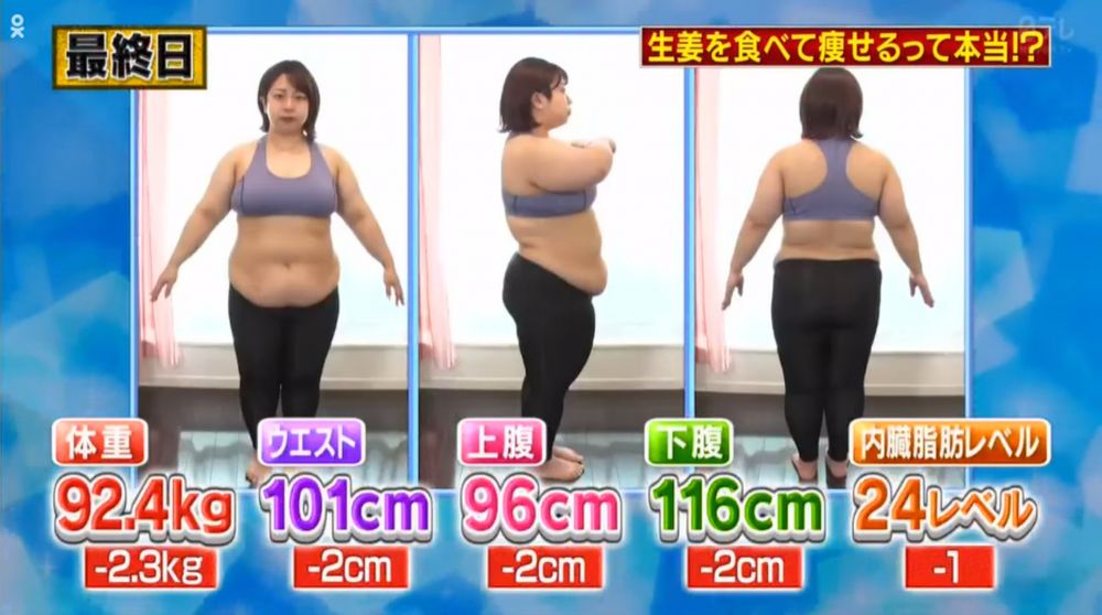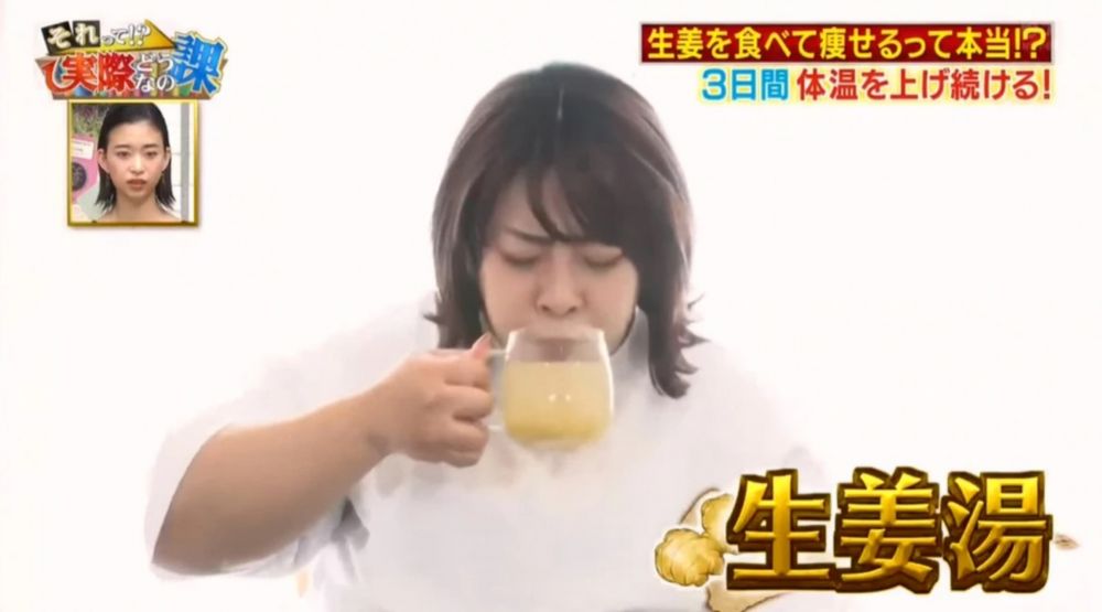 進食薑對身體有不少益處,尤其是容易手腳冰冷、或者會經痛的女生必備食品之一,原來除了促進血液循環和保暖之外,薑更對減肥有幫助!日本節目《それって!?実際どうなの課》找來藝人餅田越光來實測,在一日三餐中都加入薑,三日後她的體重竟然有所改變!