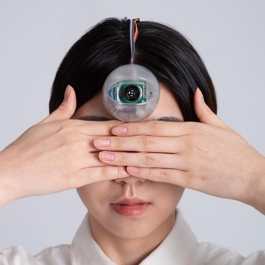 皇家藝術學院的韓國工業設計系學生Minwook Paeng發明了一款「機器眼」,半透明的圓形塑膠,外觀像是人眼,內裏包著超聲波感測器、喇叭和陀螺儀等電子零件。上頭的薄凝膠墊片讓用家可以把它固定在額頭上~在使用者低頭時,機器眼就會自動開啟塑膠外殼,並開始偵測前方路況,如果前方一米有障礙物,它就會發出響聲,警告用家。