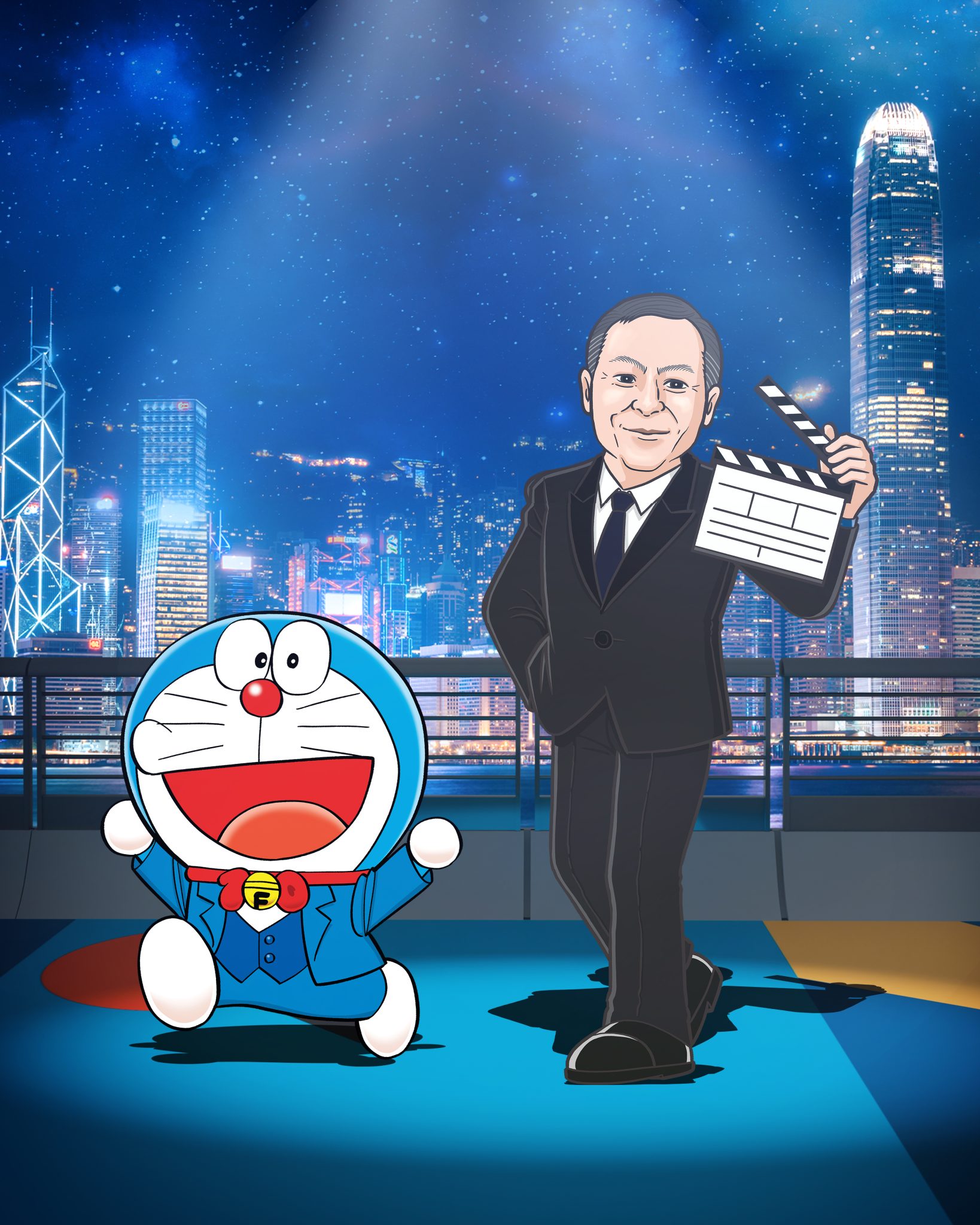 多啦A夢多年來一直是漫畫迷的集體回憶,「大長篇」電影故事亦在日本及香港電影行業中佔着相當重要的地位。這次特展特別藉此機會,讓多啦A夢首度透糅合香港電影文化,因此這次多啦A夢將會聯同七位好友,包括大雄、靜香、胖虎、胖妹、小夫、多啦美及出木杉,以及藤子 F 不二雄老師等角色,攜手13位香港電影工作者一起踏上星光大道!