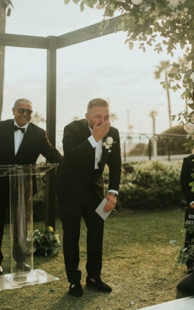 當Jay轉身望向Chelsie時隨即淚崩,感動得大哭出來!Chelsie表示交往後很少和男友平視相對,多是由男友推著她活動,所以看到Chelsie站立的瞬間感動到崩潰也是正常,Chelsie秘密訓練走路就是為了在婚禮上感受與新郎面對面站著的感覺,在婚禮獻上了人生中難得的禮物。