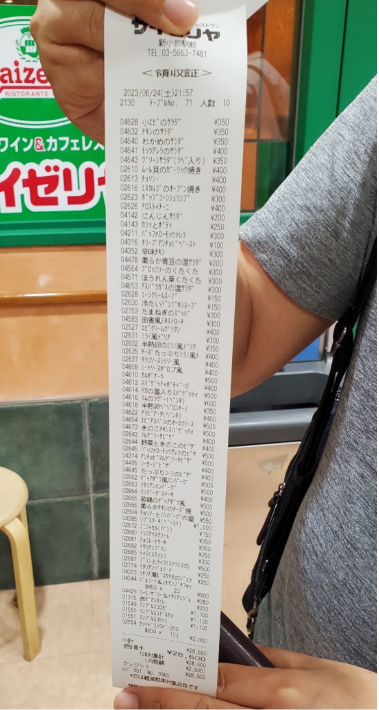 最終他們吃了將近60道菜式以及每人一杯飲料,到這地步,大家應該很想知價錢是多少吧!吃到讓大家抱著肚皮走的只需要28600 Yen ( 折合為港幣 1596 元 ) 。貼文推出後,在網上即時掀起一陣討論,「會否太便宜 」、「 薩莉亞是天堂吧!絕對是窮人恩物吧!」