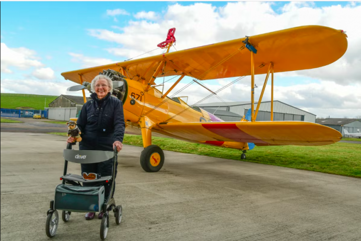 年紀漸長你會放棄自己的夢想嗎?一名英國婆婆以行動證明,人生不應受年紀限制,勇敢追夢才無悔。93歲婆婆Betty Bromage近日於英國賽倫塞斯特附近的機場上空進行人生第5次機 翼行走挑戰,她將自己綁在機翼上完成整套表演,更成功刷新健力士世界紀錄,實現自己的心願,最終也為慈善機構籌集了超過23000英鎊(約21.9萬港幣)!