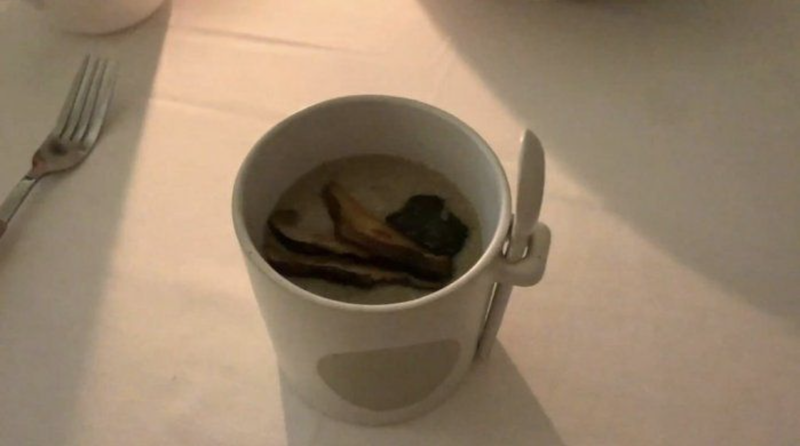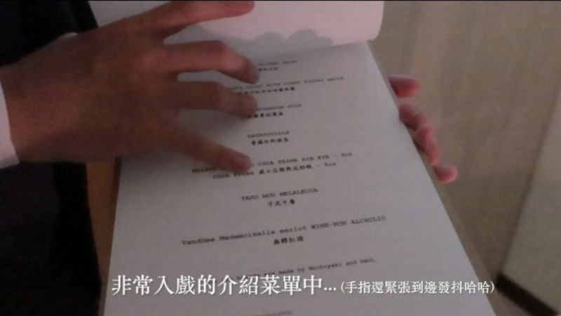 生日當天女友已經被眼前的餐廳場地嚇一跳,男友更換上西裝,拿住餐單向自己介紹菜色(他更緊張得雙手發抖),餐單設計十足十外面的西餐廳。前菜包括雞肉沙律及麵包、鮮蝦蘆筍沙律佐咖哩乳酪醬、餐湯是松露蕈菇濃湯、主菜包括普羅旺斯燉菜、USDA Prime威士忌微熟成肋眼牛排,配上紅酒,最後獻上芋泥千層生日蛋糕完結這一餐。