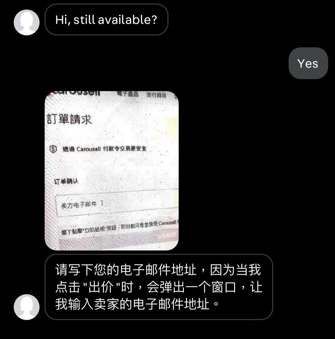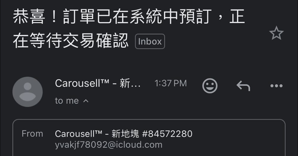 當賣家提供電郵地址後,很快就會收到一個聲稱由網站官方寄出的電郵等特交易確定,不過寄件方的電郵明顯非官方寄出。