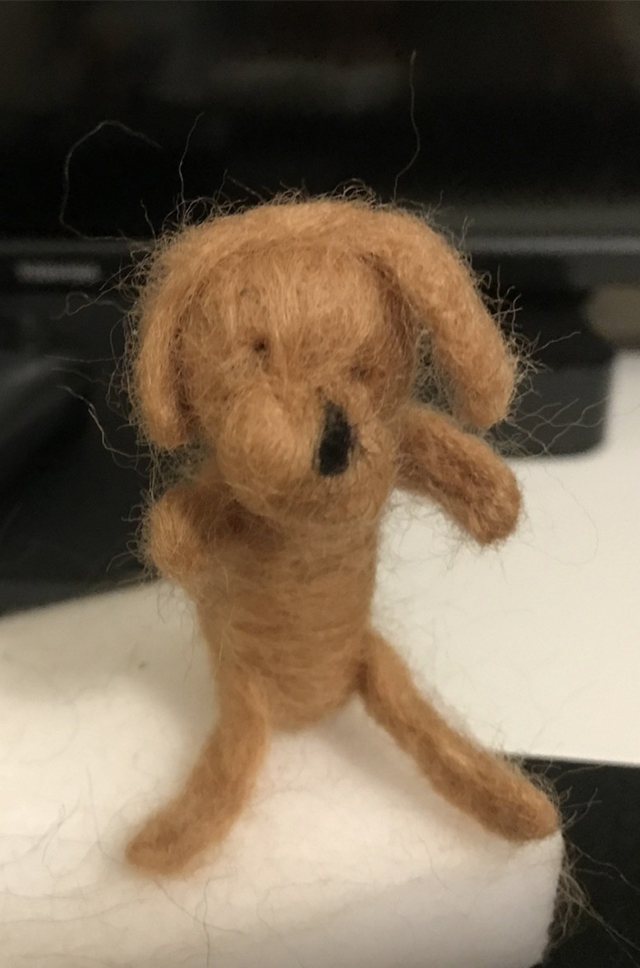 女友購買了兩包羊毛氈公仔,目的是希望和男友互送給對方,製作前她更有滿滿的信心覺得自己一定比男友做得神似,畢竟只是個羊毛氈公仔。為什麼女網友可以這麼有信心!全因日常生活中男友寫字和畫畫都像「鬼畫符」,對他的美感沒有任何期待值。