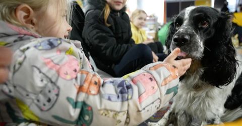 俄烏戰爭持續,據聯合國兒童基金會(UNICEF)指出,戰爭導致430萬烏克蘭兒童流離失所。戰爭除了令他們失去家園,更帶給他們巨大的心理創傷。東部城市紮波羅熱(Zaporizhzhia)一所人道救援中心的義工,將28隻狗狗組成「寵物療癒隊」,協助兒童們適應戰後的生活。